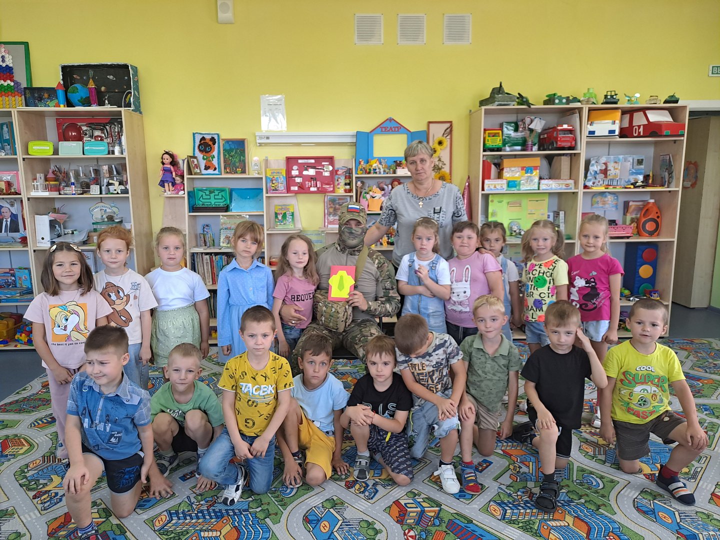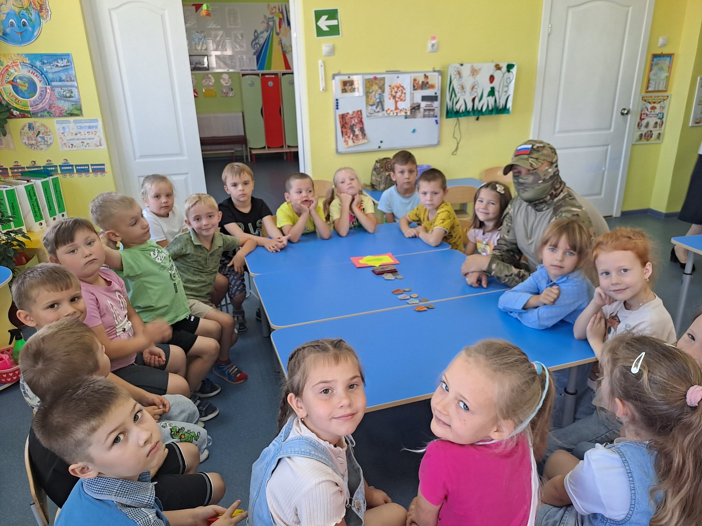В МДОУ "Детский сад комбинированного вида №2 «Машенька» г. Ершова Саратовской области" в группе «Радуга» состоялась встреча с участником СВО. На встречу к дошкольникам пришел участник специальной военной операции Сергей Николаевич. Сейчас он находится в краткосрочном отпуске. Любознательные воспитанники подготовительной к школе группы приготовили много вопросов. Военнослужащий с удовольствием отвечал на них. Боец рассказал о военных буднях, бытовых условиях проживания на передовой, трудностях, с которыми им приходилось сталкиваться в первые дни пребывания на СВО.