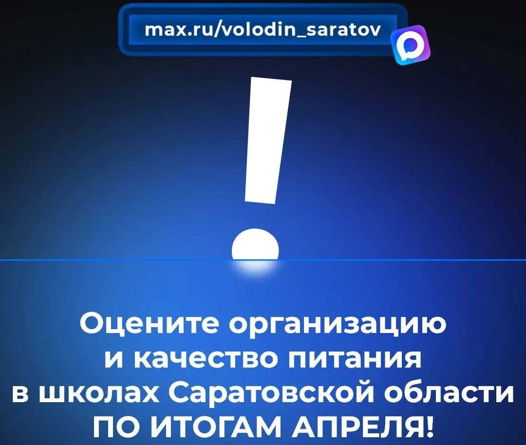 В канале «Володин Саратов» в МАХ идет опрос на тему организации и качества питания в школах Саратовской области ПО ИТОГАМ АПРЕЛЯ