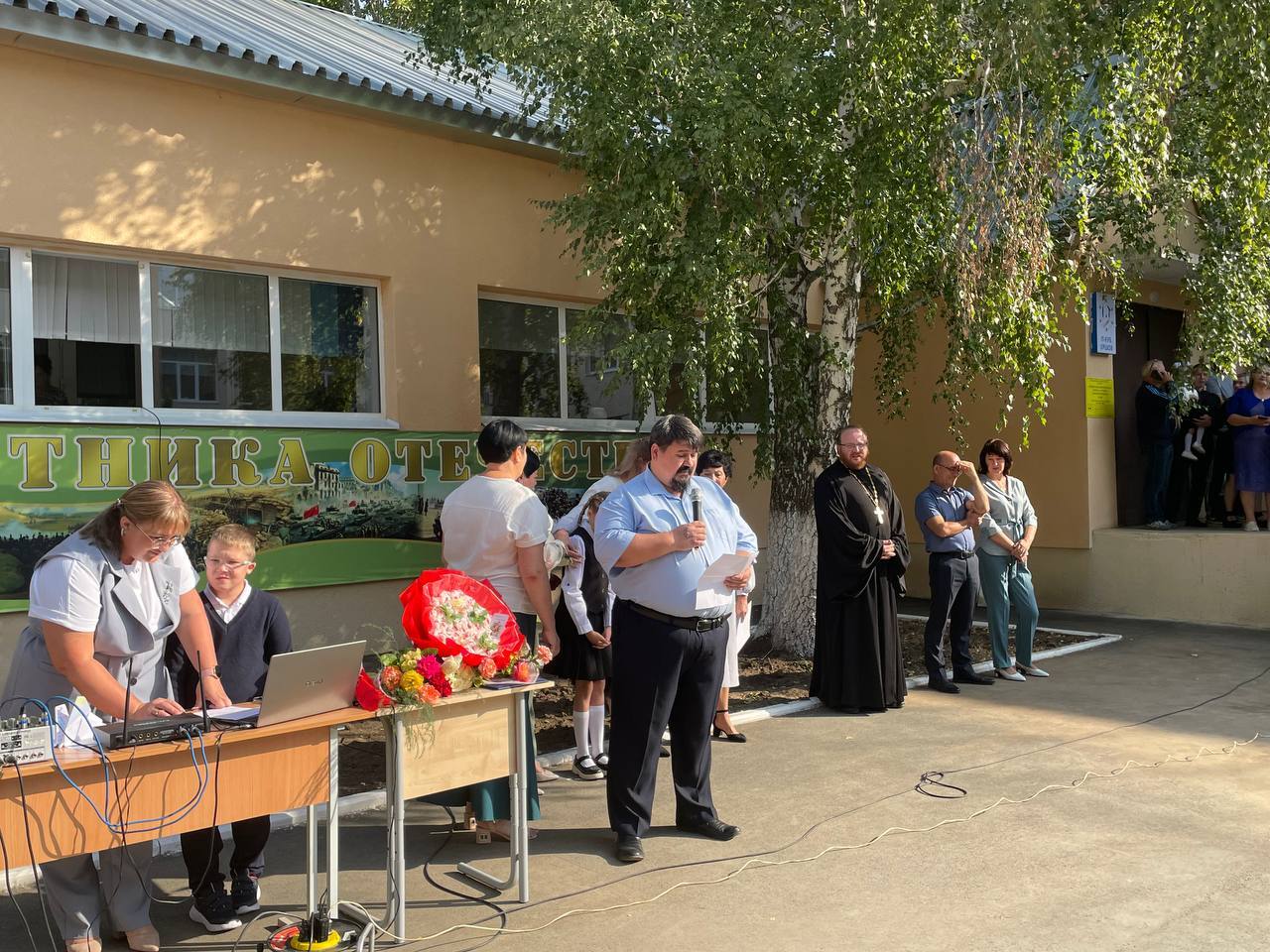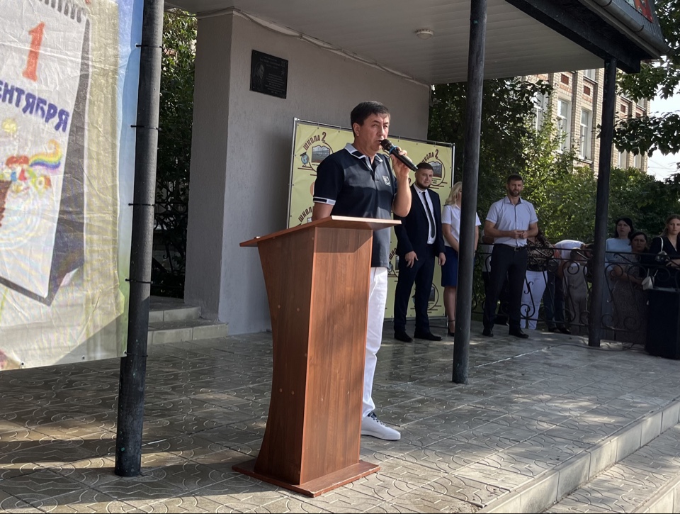 И.о. заместителя главы администрации района по социальным вопросам Владимир Терещенко побывал на линейке МОУ СОШ №4 и пожелал детям уверенности в своих силах и интереса к знаниям.