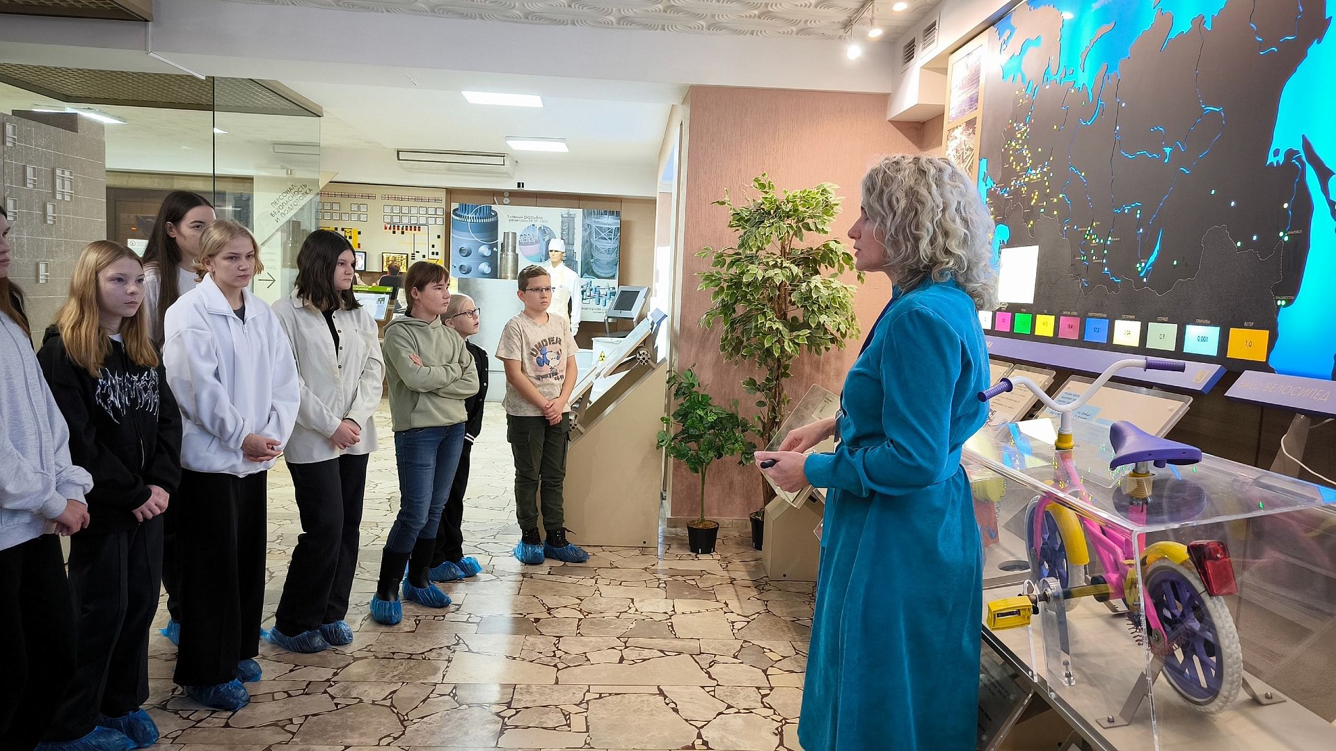 В ходе экскурсии по информационному центру школьники получили возможность провести эксперимент с использованием счетчика Гейгера, что стало для них интересным и познавательным опытом. Счетчик Гейгера - это прибор, который используется для измерения уровня радиации, и его применение позволило учащимся лучше понять меры безопасности, предпринимаемые для обеспечения надежной и устойчивой работы станции. Ребята убедились, что в каждом человеке присутствует некоторое количество радиоактивных веществ, что является естественным явлением. Далее ребята прошли проверку в специальном аппарате через рамку. Только после того, как он определяет отсутствие радиоактивных частиц на теле, открывается шлагбаум и можно выйти.