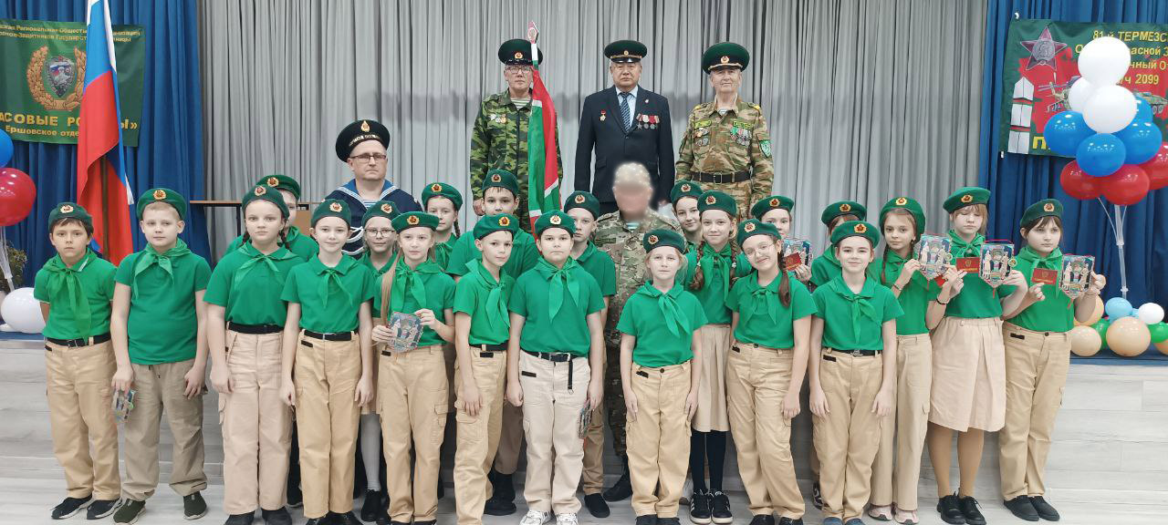 Военнослужащий СВО принял участие в торжественной церемонии посвящения ершовских пятиклассников в юные друзья пограничников