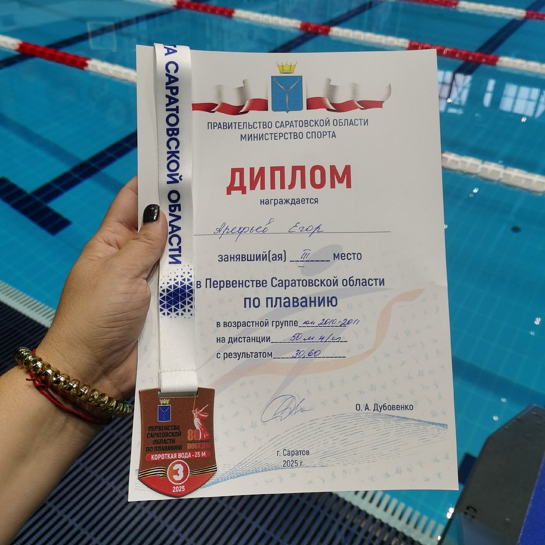 Воспитанник спортивной школы г.Ершова завоевал бронзу на областном чемпионате по плаванию