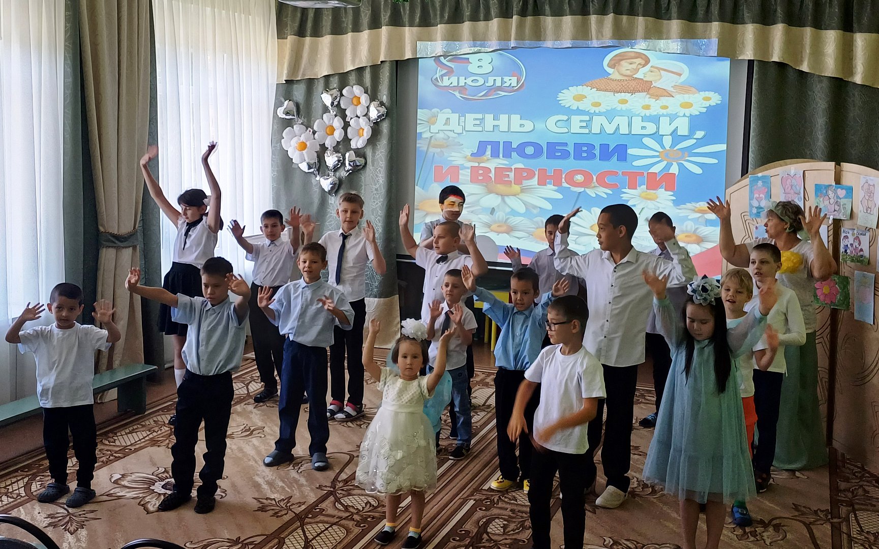 Замечательный праздничный концерт, посвященный этому семейному празднику, состоялся в Ершовском реабилитационном центре. К празднику ребята готовились заранее, изучая со специалистами историю этого праздника, уходящего корнями в XIII век. Также ребята с удовольствием подготовили выставку рисунков «СемьЯ».