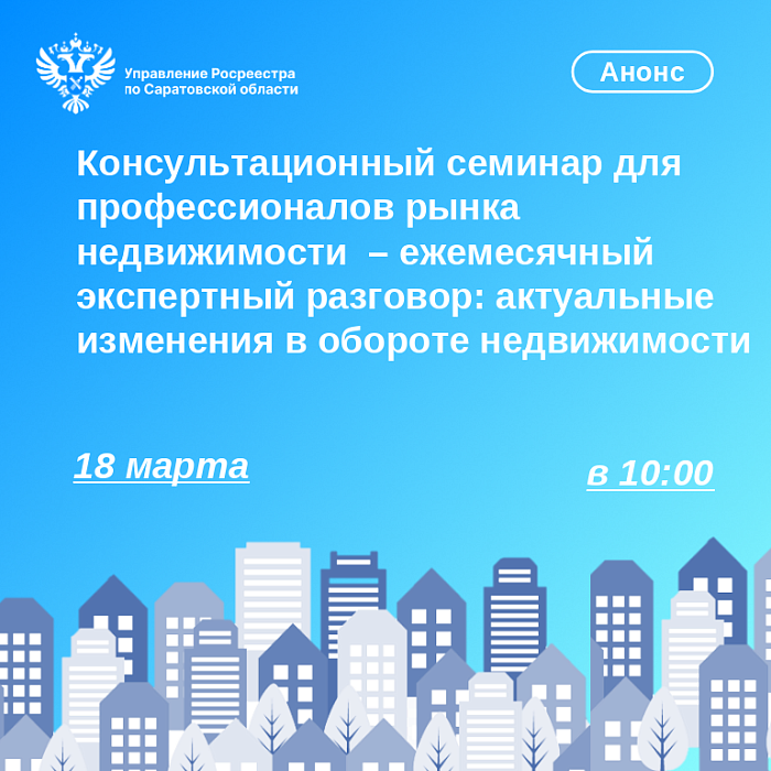 Чтобы попасть на семинар, пишите на электронный адрес: filial@64.kadastr.ru с пометкой «На семинар 18.03» или звоните: 8 (8452) 37-28-60 (доб. 2213).