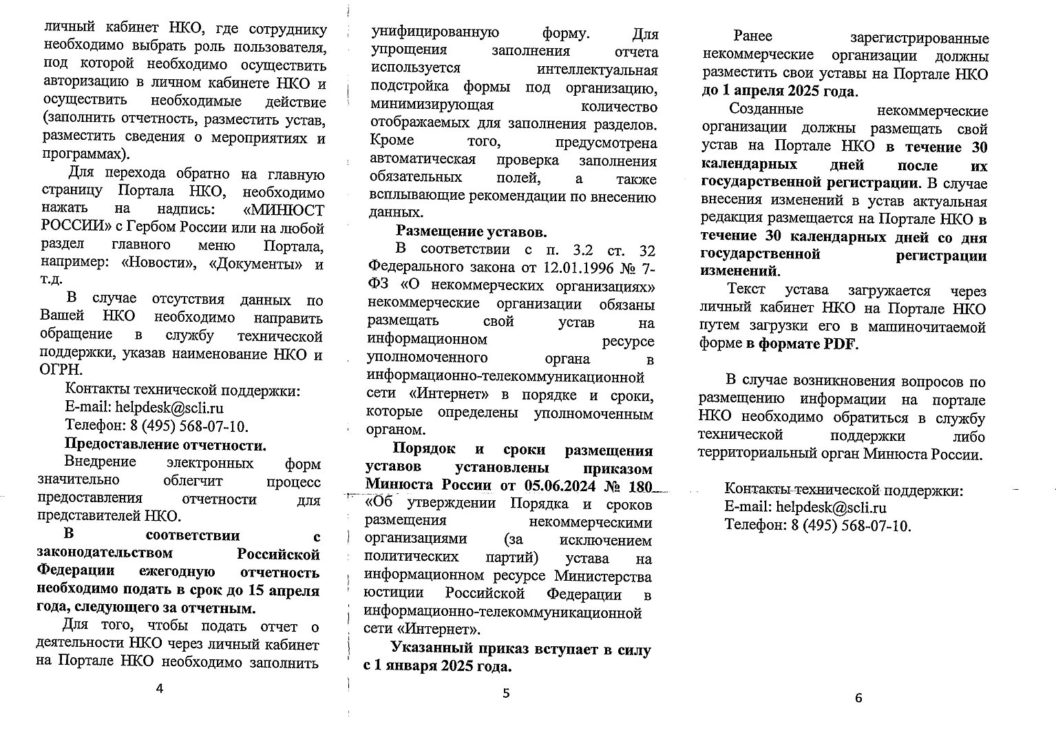 2. Размещение на рабочих местах памяток для НКО о порядке предоставления отчетности, а также публикации уставов в электронном виде на Портале.