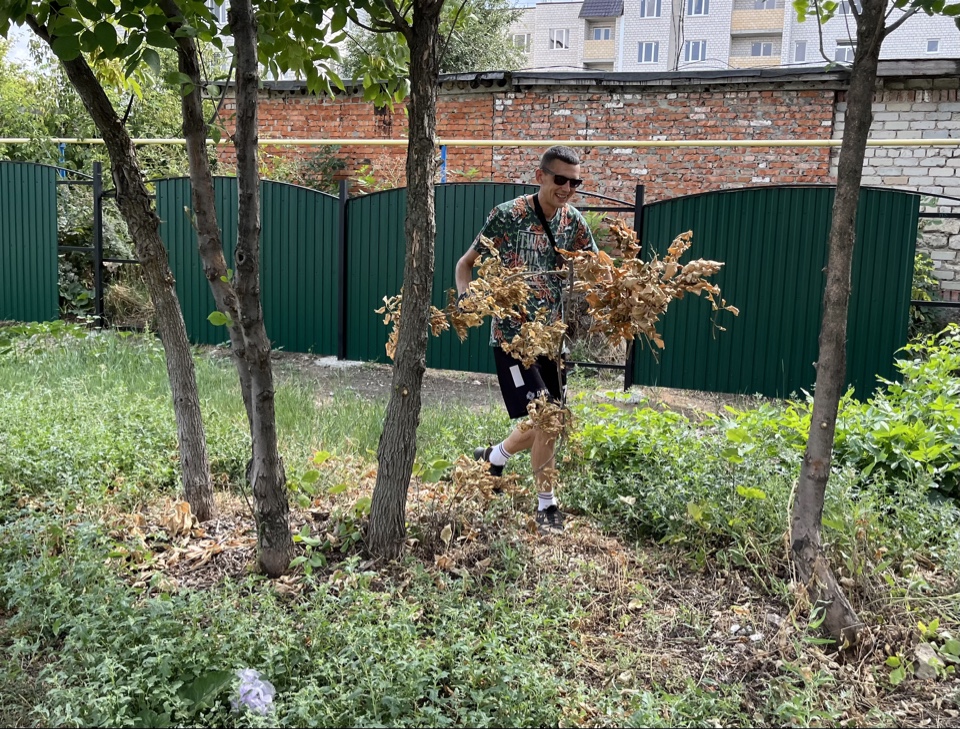 Участники провели масштабную уборку территории: были обрезаны разросшиеся кустарники и ветви деревьев, собран мусор, убраны камни, сорная трава, сухостой и сухие ранее обрезанные ветви деревьев.