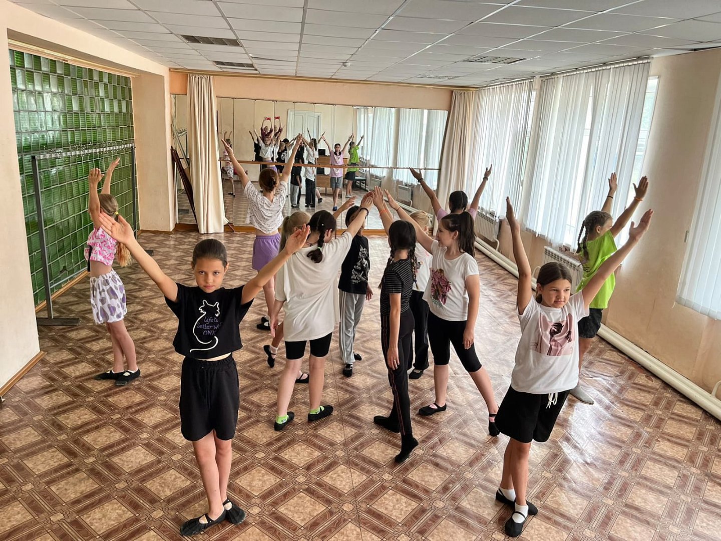 Юные талантливые артисты своими яркими номерами способны украсить любое мероприятие. Даже в период летних каникул коллектив с преподавателем Анастасией Молотковой продолжает репетировать, чтобы вновь радовать зрителей своими выступлениями. А вот и фото с сегодняшней репетиции.