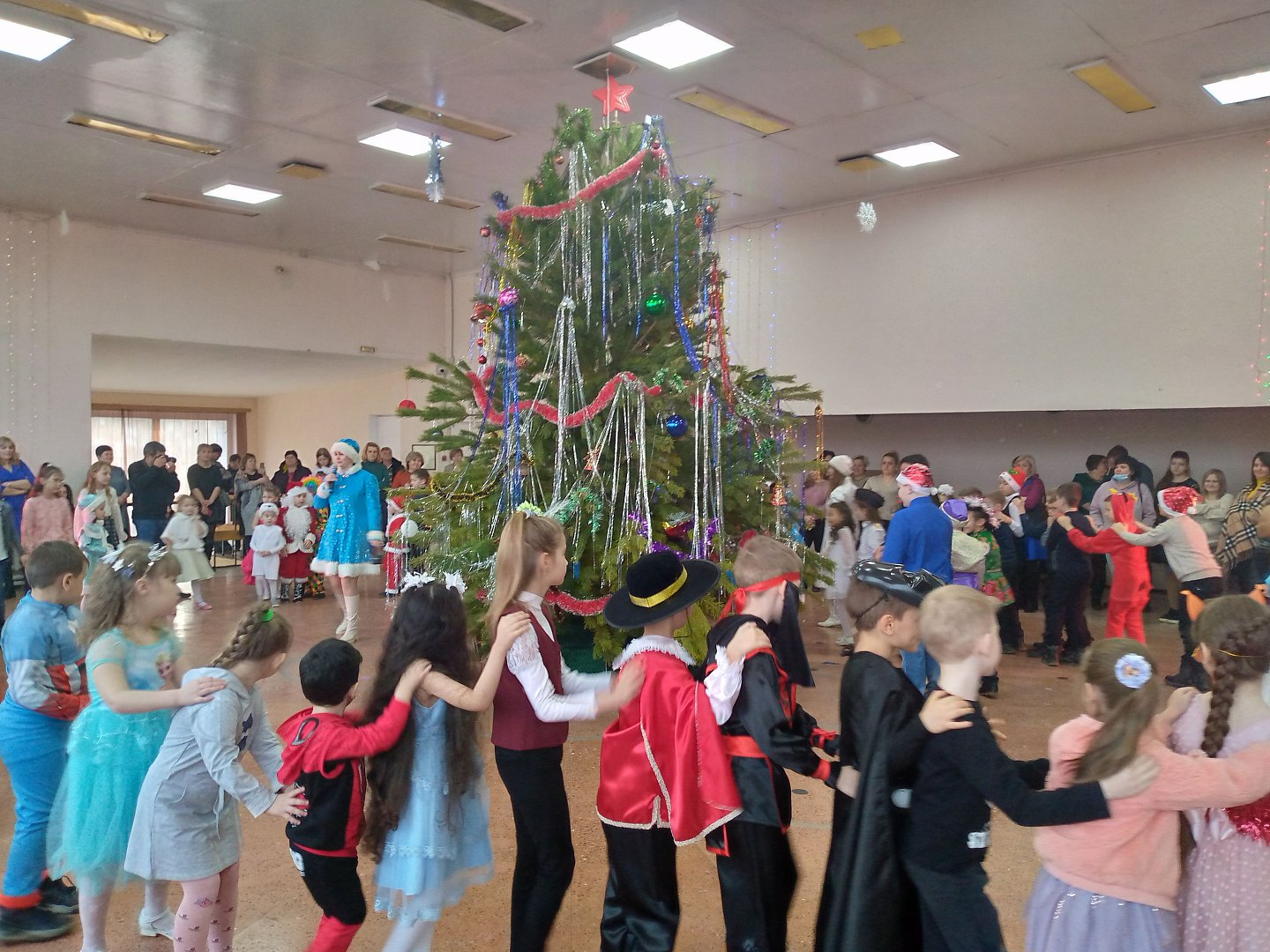 Открыли праздничное представление Зимушка-Зима и Снежинка, они в игровой форме познакомились с ребятами и поводили с ними хороводы вокруг большой нарядной ёлки. Все участники праздника с большим удовольствием повеселились возле ёлочки, а затем отправились в небольшое путешествие в "новогодний лес", где их ждало увлекательное приключение "Заговор снеговиков в новогоднем лесу". В завершение праздника все ребятишки получили сладкие новогодние подарки и хорошее праздничное настроение.
