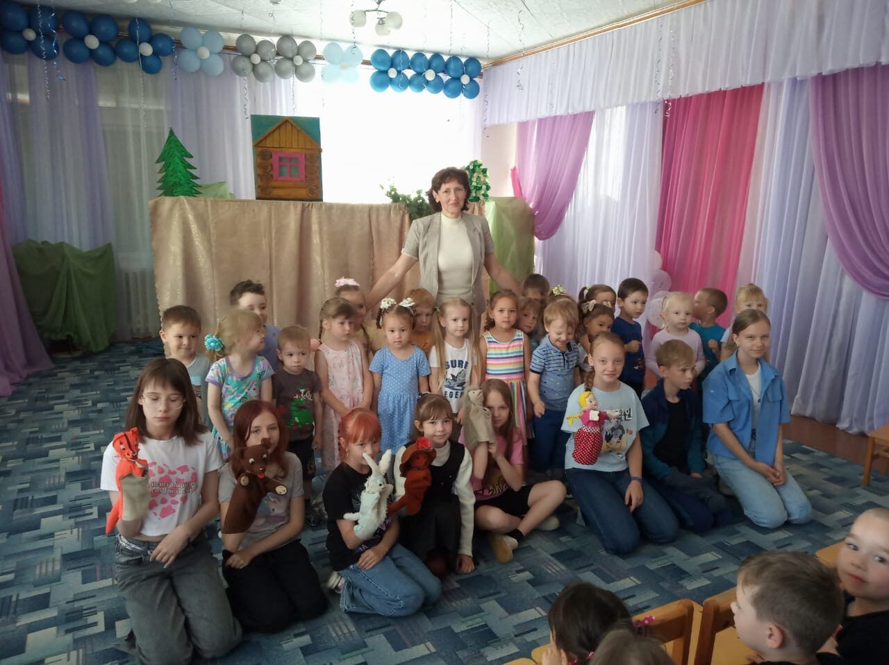 Детские творческие коллективы РДК г.Ершова «Лукоморье» и «Рукоделочка» продолжают свои летние гастроли по детским садам г.Ершова. Кукольный театр – одно из самых любимых зрелищ для детей. Юные артисты дарят своим маленьким зрителям новые сказки и хорошее настроение, и самая большая награда для них видеть, что представление доставляет искреннюю радость. На этой неделе ребят со сказкой про счастье тепло и радушно встретили в детских садах «Машенька» и «Звездочка». Благодарные зрители не скупились на аплодисменты, представлением им очень понравилась, и они всегда рады видеть у себя в гостях артистов с новыми сказками. И, конечно же, по традиции ребята вместе с руководителем кружка «Рукоделочка» Еленой Сукнатовой сделали замечательные аппликации.