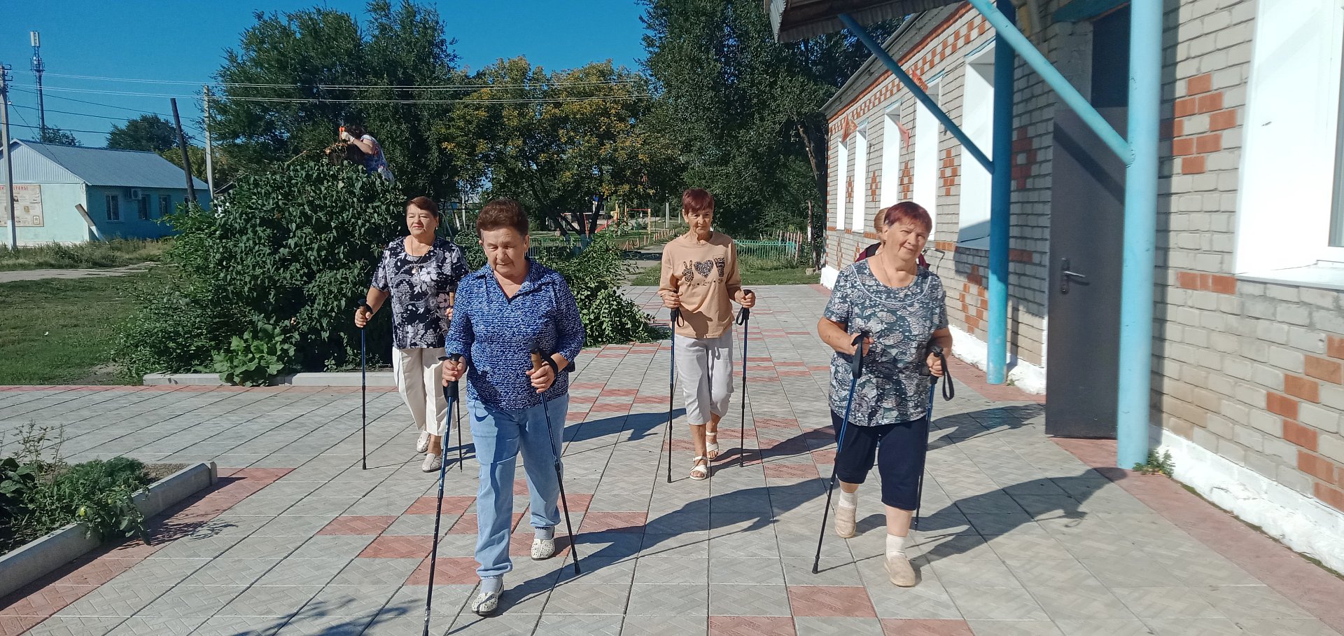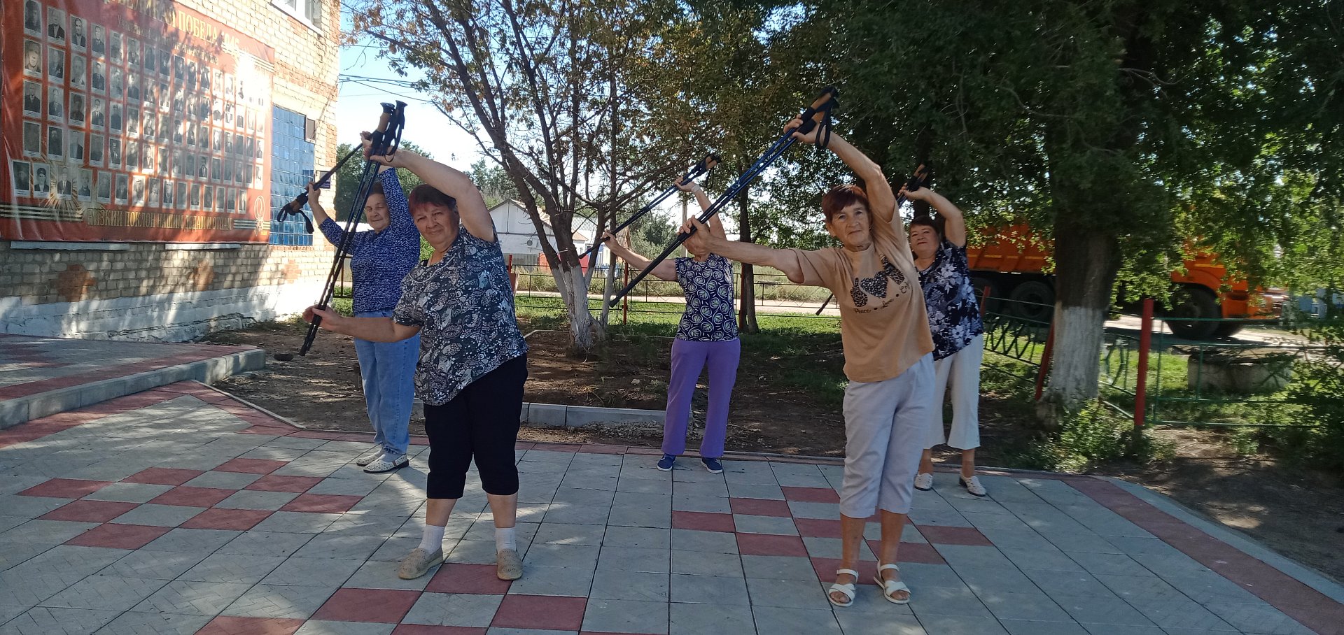 Ну а после беседы, «спортсменки» вышли на улицу, сделав разминку, приступили к скандинавской ходьбе.