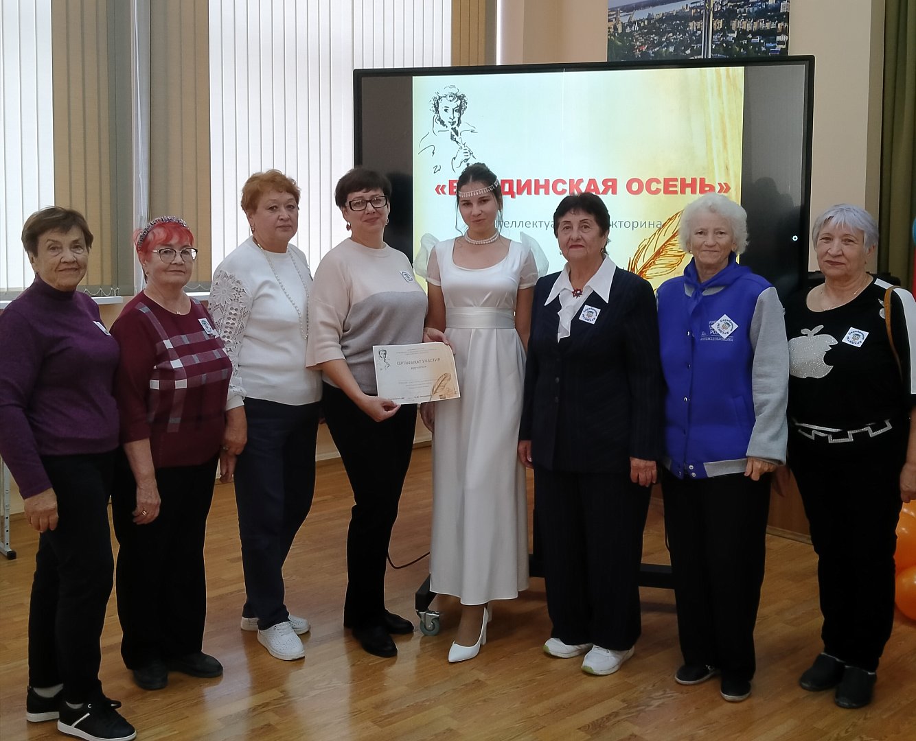«Серебряные» эрудиты центра социального обслуживания населения Ершовского района в очередной раз стали участниками интеллектуально-литературной игры «Болдинская осень». Туры полюбившейся игры содержали вопросы о жизни и творчестве поэта, задания на логику и загадочный черный ящик. Как отметили старшие: «Было интересно, увлекательно и познавательно. В воздухе витал дух доброго соперничества. И пусть призовое место не завоевано, главное – активная жизненная позиция в «серебряном» возрасте».