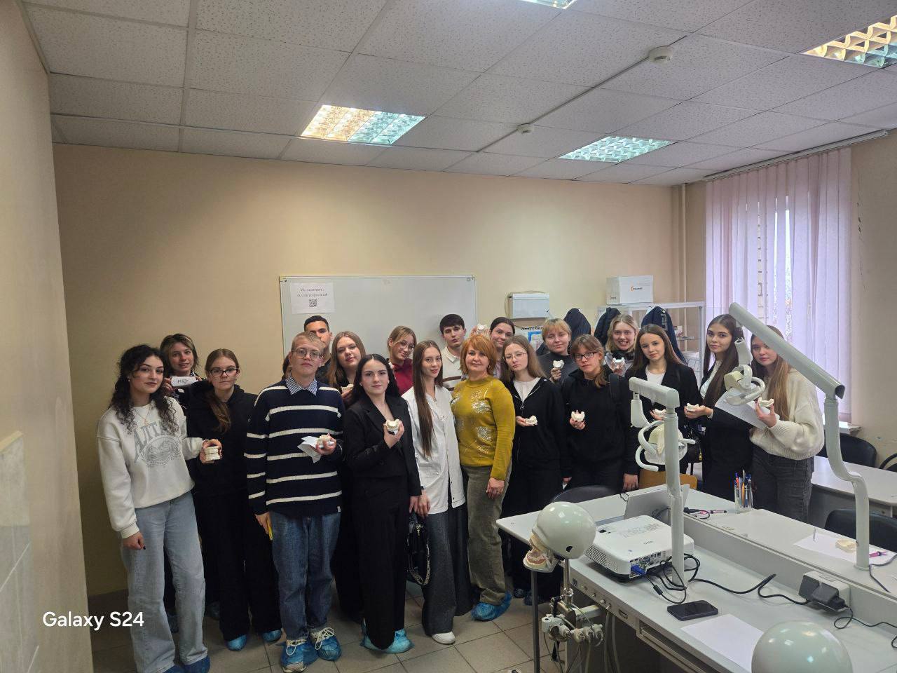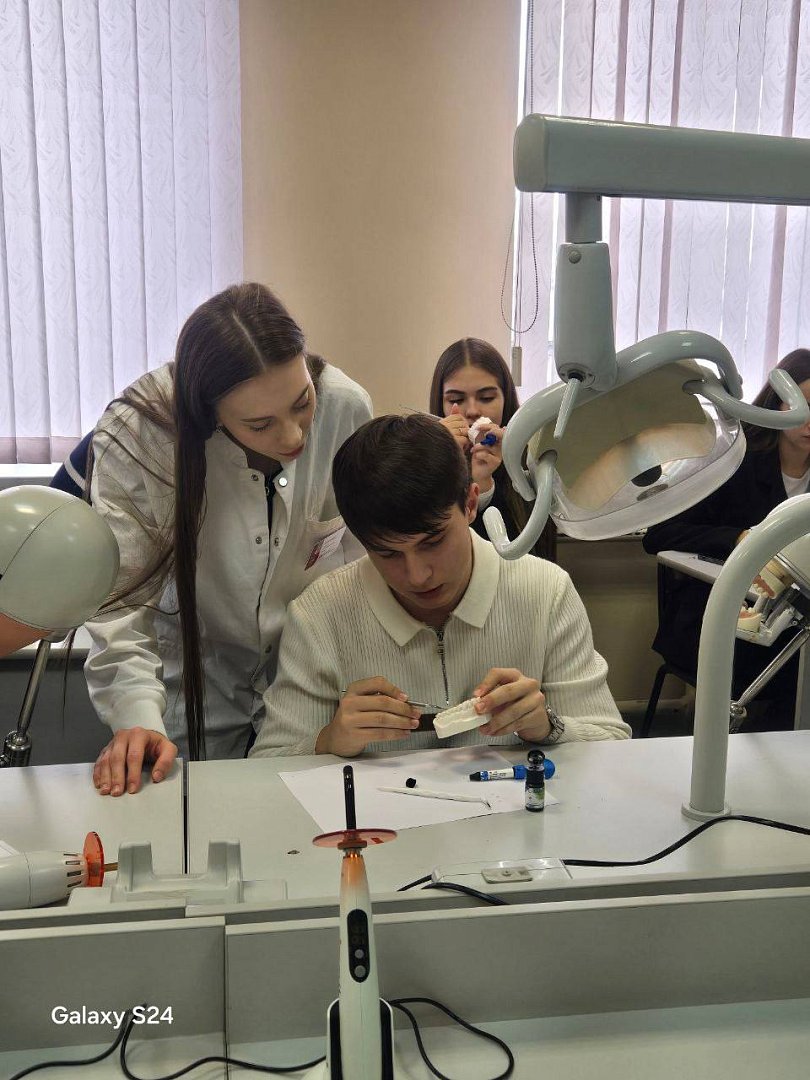 Не менее интересным стало занятие на кафедре пропедевтики стоматологических заболеваний. Школьники попробовали себя в роли начинающих стоматологов и выполняли пломбирование на учебных моделях «шестерок». Несмотря на кропотливость работы, она принесла участникам большое удовольствие и новый ценный опыт. В завершение всем разрешили забрать выполненные работы домой — небольшой, но приятный сувенир о поездке.