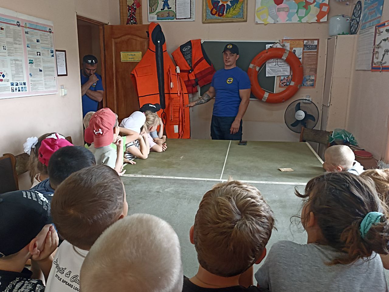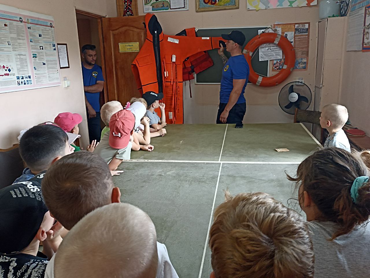 Во время урока дети получили ценные знания о том, как правильно реагировать на сигналы пожарной тревоги, как эвакуироваться из здания. В ходе занятия дошколятам в очередной раз напомнили, как вести себя, находясь у воды, чего нельзя делать во время купания, показали и разъяснили о запрещающих знаках у воды, а также продемонстрировали основные средства спасения.
