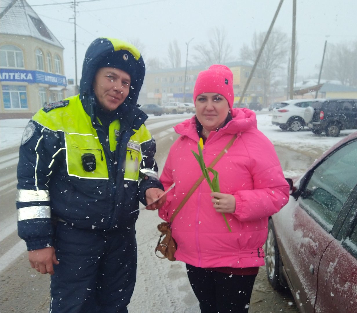 Несмотря на то, что до календарного праздника оставалось ещё пару денёчков, инспектора ДПС отделения Госавтоинспекции ОМВД России по Ершовскому району не стали дожидаться его и уже вручили девушкам и женщинам-водителям цветы и поздравили с самым весенним праздником, пожелали здоровья, счастья, любви и внимательности на дорогах.