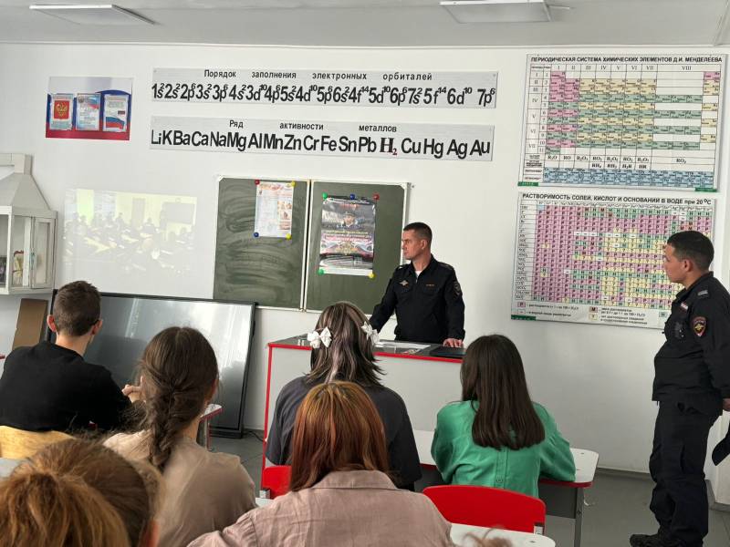 Заместитель начальника отдела начальник отделения по работе с личным составом отдела МВД России по Ершовскому району Саратовской области майор полиции Андрей Елфимов и инструктор по профессиональной служебной физической подготовке старший сержант полиции Вячеслав Альжанов рассказали обучающимся о работе в органах полиции, условиях приема в вузы МВД, ответили на вопросы школьников.