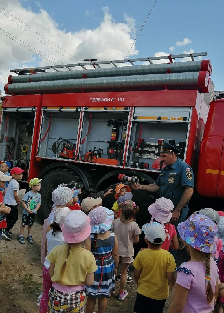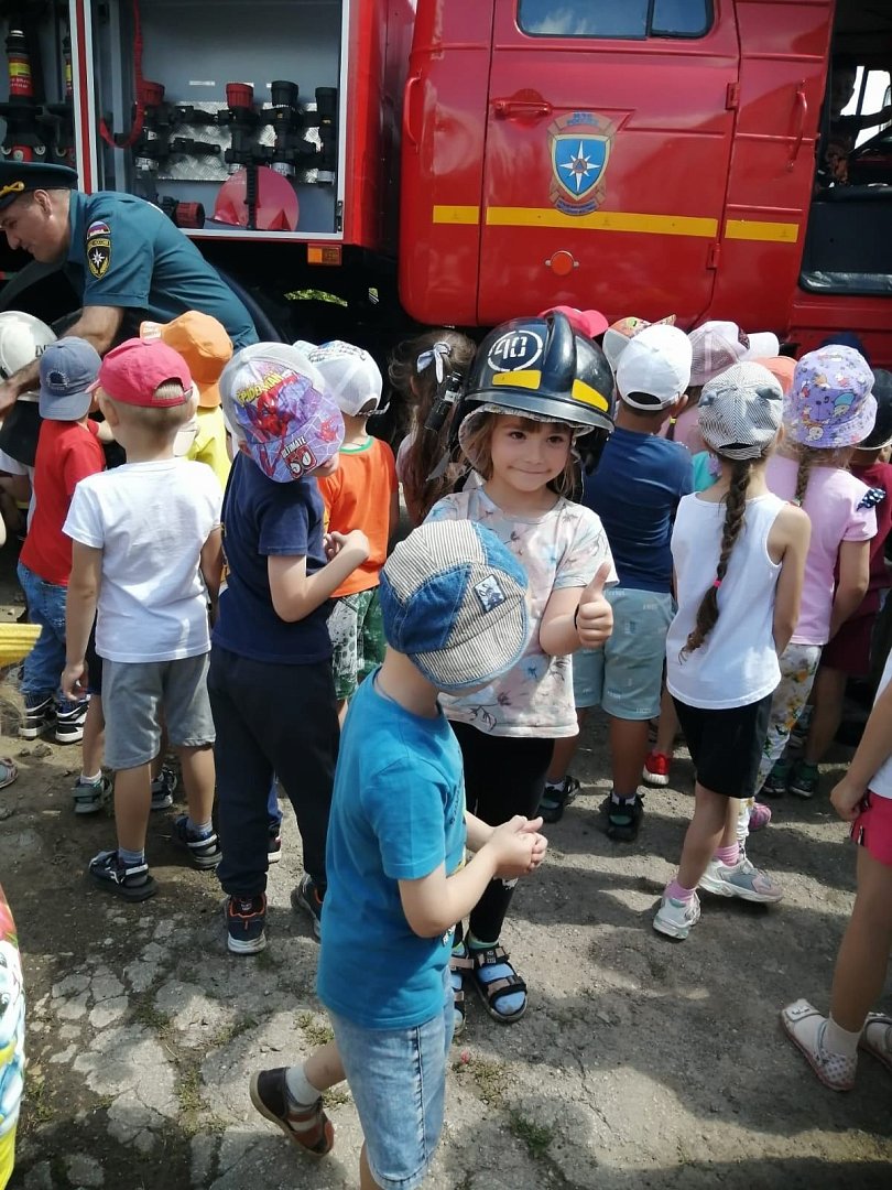 После проведения занятий по эвакуации сотрудники МЧС провели беседу с детьми «Как правильно вести себя при пожаре», повторили правила пожарной безопасности и сфотографировались на память.