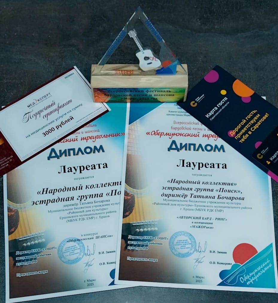 Исполнители Ершовского РДК приняли активное участие в мероприятии. На этот раз «Народный коллектив» эстрадная группа «Поиск» выступал сразу в двух номинациях, в которых получил высшие награды: дипломы лауреата, кубки, сертификаты и памятные сувениры от спонсоров фестиваля.