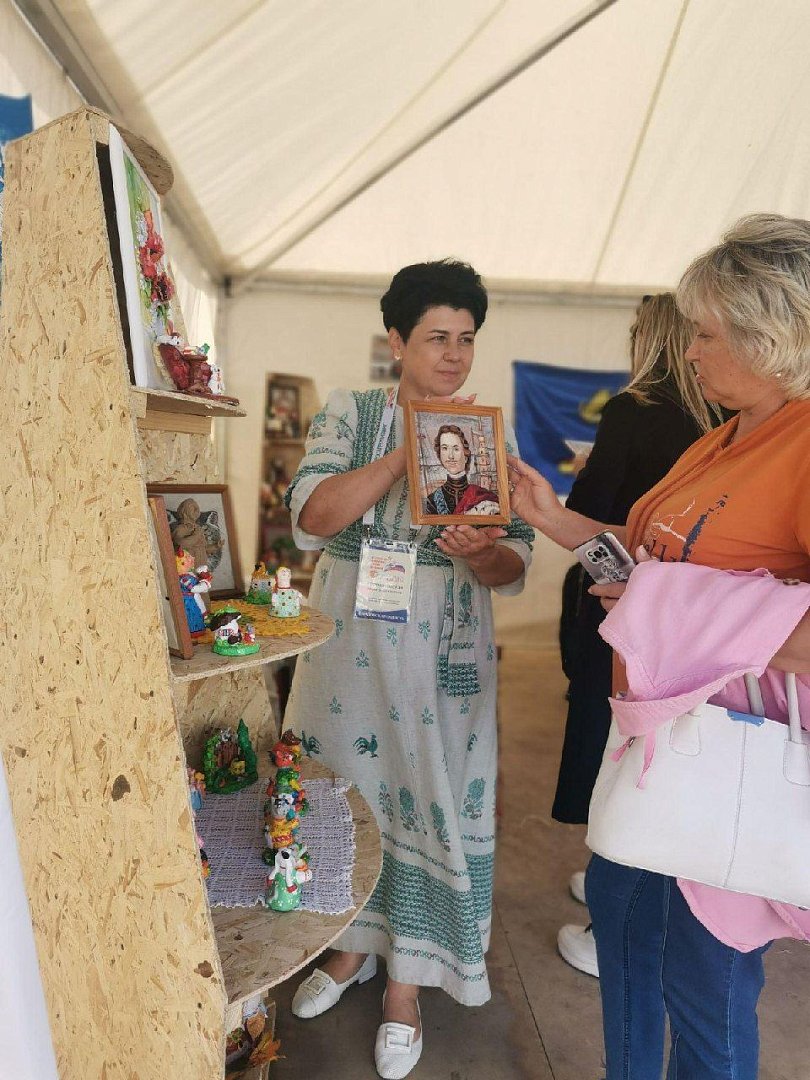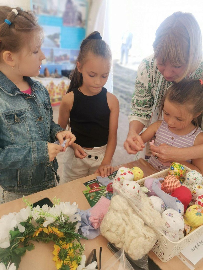 На выставке представлена глиняная брендовая игрушка, созданная руководителем кружка «Жар-птица» Еленой Долматовой. Также Елена Викторовна проводит мастер-класс по изготовлению пальчиковой игрушки. К продаже доступны кукла-оберег и кукла-травница.