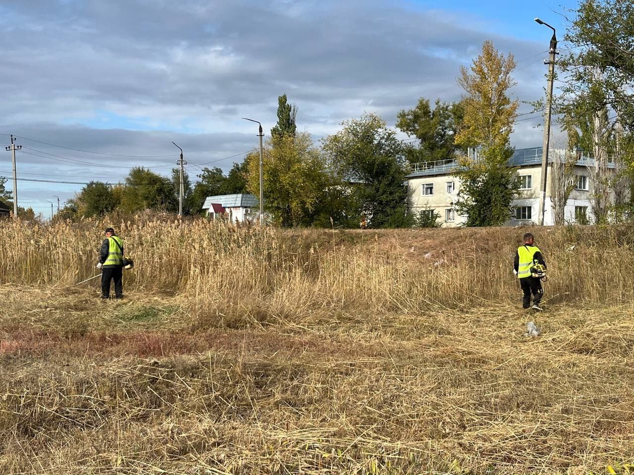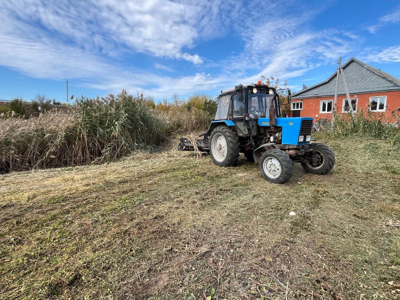 Кроме того, были выполнены работы по покосу камыша по ул.Кутузова (р-н кинотеатра "Юность"), а также покос камыша трактором МТЗ с косилкой по ул. Гайдука. На ул. Солнечная была произведена нарезка водосточной канавы.