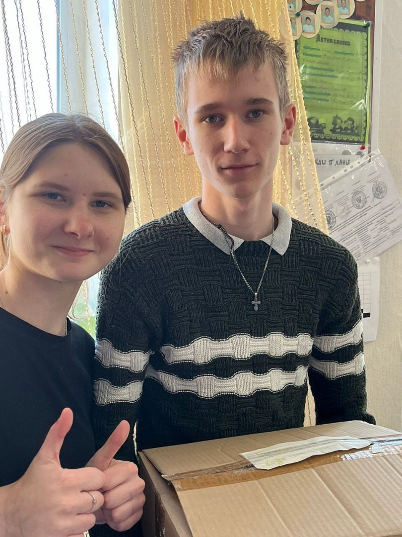 На этой неделе ребята 8"б"класса школы №5 г. Ершова доставили в пункт приема новогодние посылки для наших защитников.