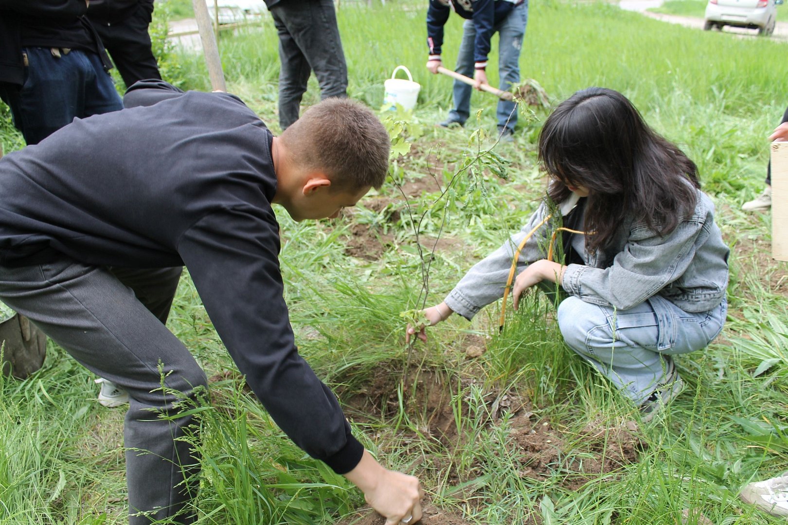 Школьники высадили саженцы дуба, клена и берёзы около территории школы, в память о героях Великой Отечественной войны и об участниках специальной военной операции.