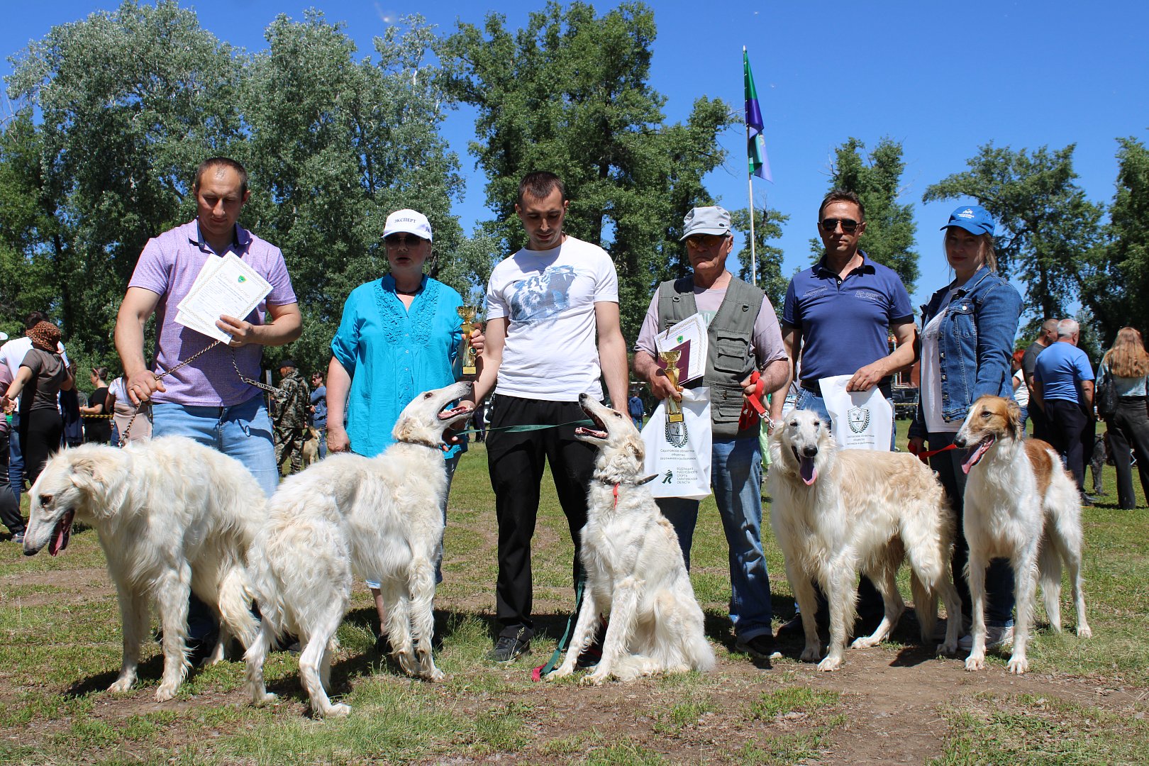 Русская псовая борзая по кличке Молния Алексея Подоляко заняла первое место в ринге старшей группы, а также по результатам полевых испытаний собака переведена в первый племенной класс и получила Малую золотую медаль.