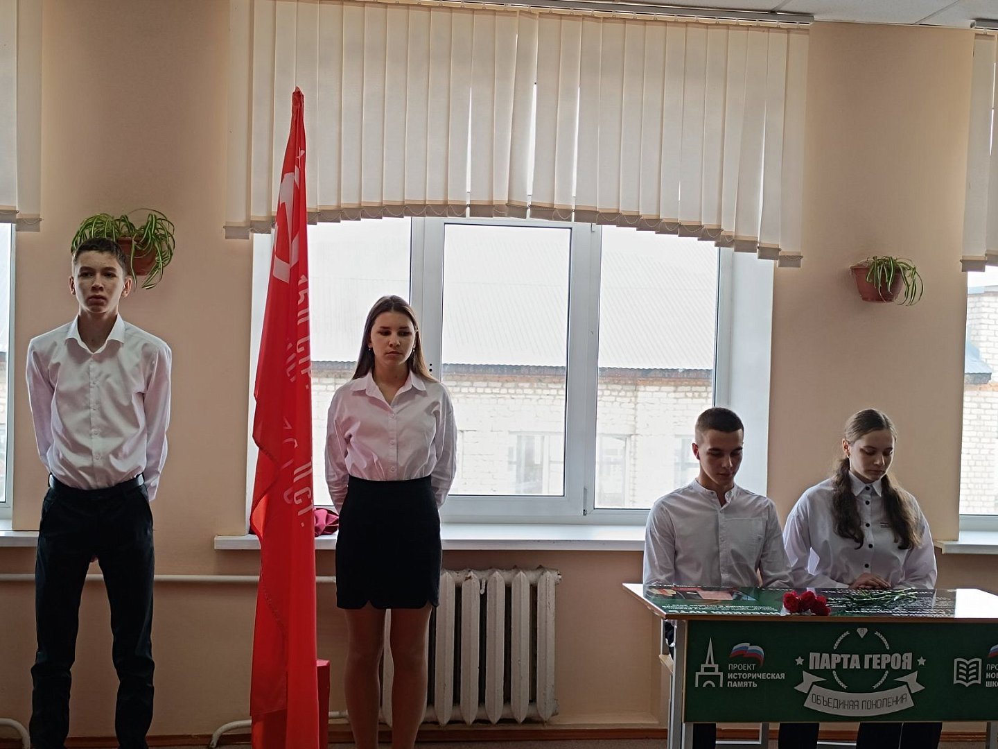 Первым почетное право сесть за Парту Героя предоставили учащимся 11 класса Дмитрию Фудько и Виктории Семеновой. Теперь возле этой парты на торжественных мероприятиях будет стоять почетный караул.