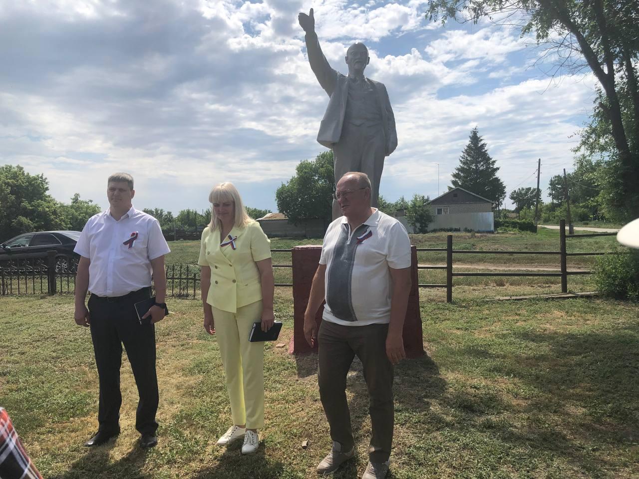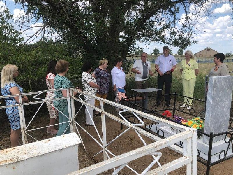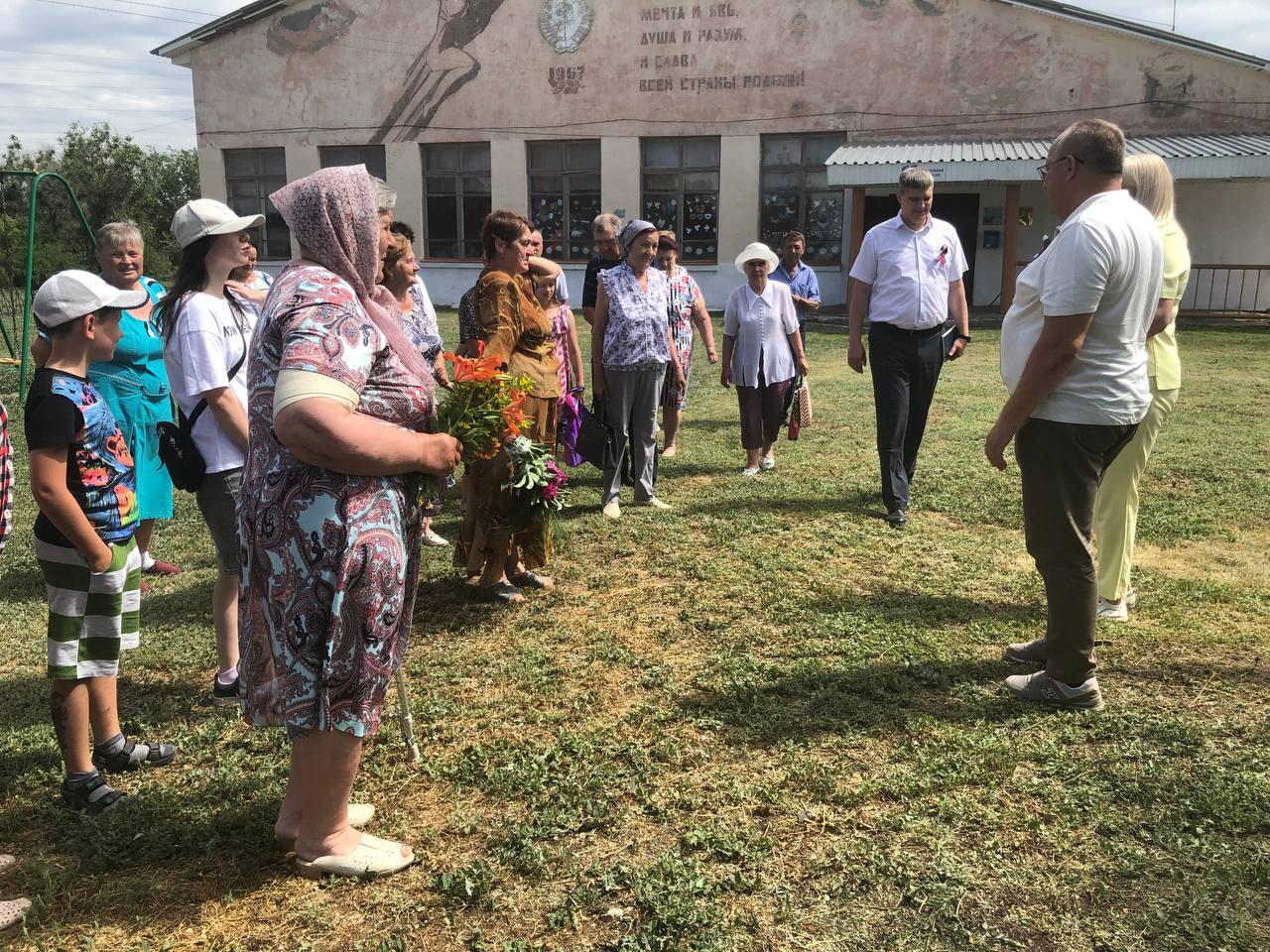 Также глава и облдеп провели встречу с жителями в с.Еремеевка. По просьбе жителей села, Иван Анатольевич помог с установкой памятника на местном кладбище - ветерану Великой Отечественной войны Анатолию Ивановичу Степанько. Возложили цветы, почтили память ветерана минутой молчания.