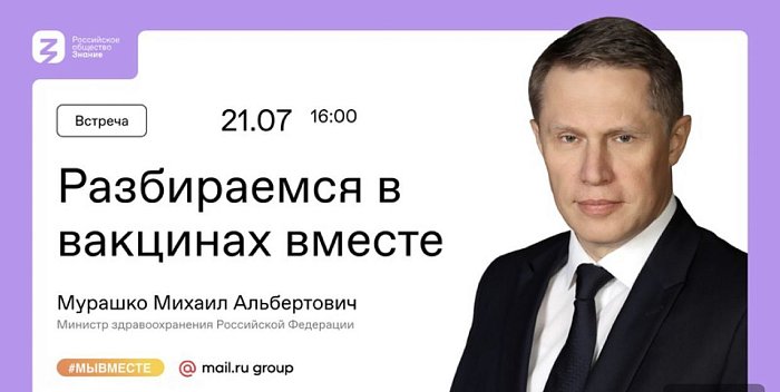 Смотри трансляцию 21 июля на сайте https://covid.znanierussia.ru и в группе Российского общества «Знание» Вконтакте: https://vk.com/znanierussia.