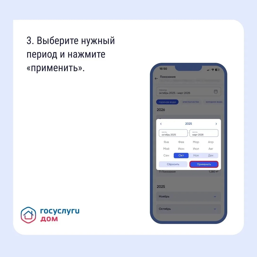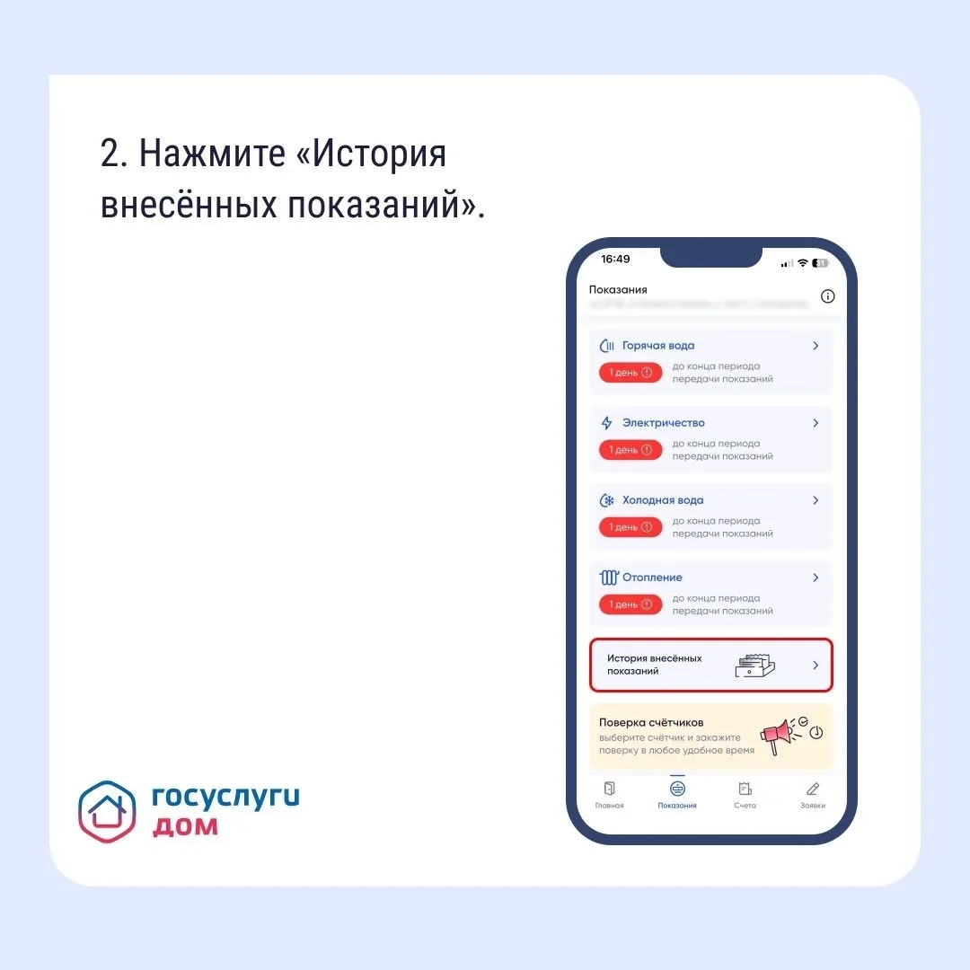 Если вам нужно найти историю показаний счетчиков, например, чтобы сравнить расход или проверить, не было ли ошибки, используйте «Госуслуги Дом».
