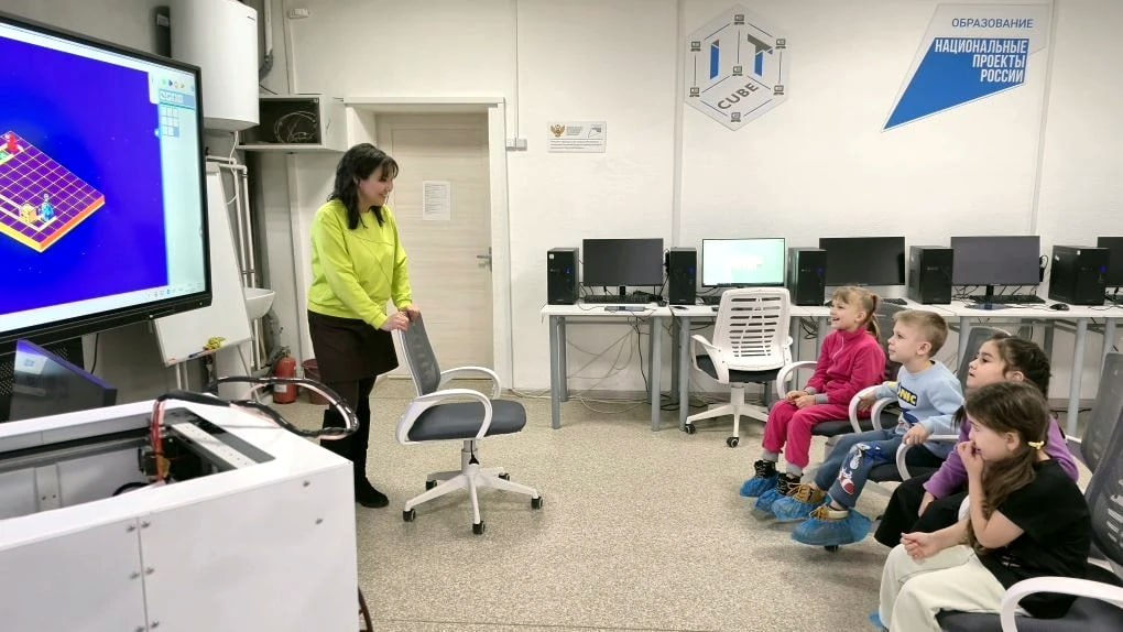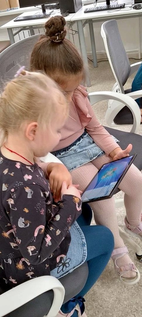 Юные программисты из различных дошкольных образовательных учреждений города — детских садов «Аленушка», «Машенька», «Солнышко», «Звездочка», а также учащиеся младших классов школ №1, №2, №3 и №4 — уже успешно освоили раздел «Команды». Ребята познакомились с базовыми командами управления («направо», «налево», «вперед», «подождать»), а также со специализированными командами космических роботов. Так, робот «Вертун» выполняет команду «закрасить», а робот «Тягун» — команду «тянуть» и другие.