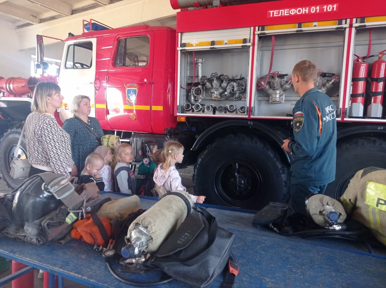 Во время экскурсии дошколята получили много новой информации о профессии пожарного, повторили правила пожарной безопасности, а также закрепили знания о том, как надо вести себя при возникновении пожара и как правильно набирать номер телефона и сообщать о пожаре.