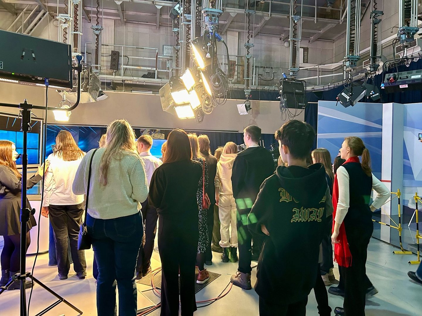 Во время экскурсии и общения с Анастасией Синичкиной и Марией Рудыч ребята узнали о работе ведущего. Например, подготовка к короткому новостному выпуску - длительный и трудоемкий процесс. Ведущий сам готовит и «вычитывает» то, что он будет вещать в прямом эфире. Телесуфлер может отключиться в любой момент, поэтому текст должен быть воспроизводимым и без дублирующей техники.