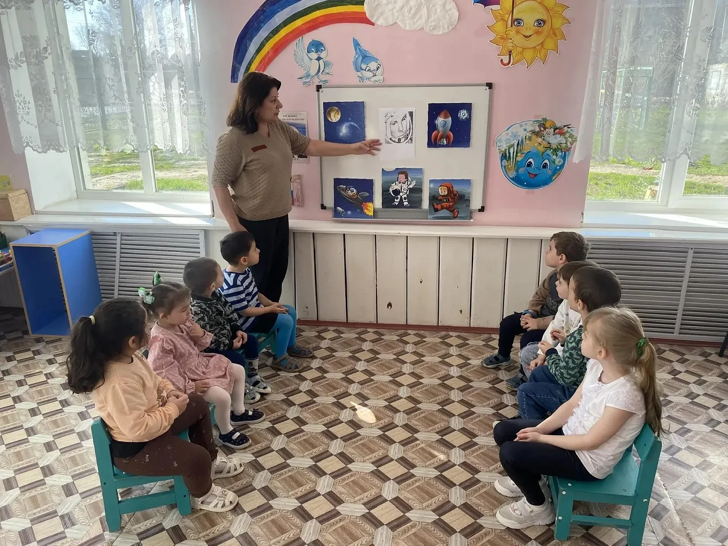 Каждый день был интересным и познавательным. Воспитатели подготовили насыщенную программу занятий, игр и мероприятий, чтобы дети смогли погрузиться в удивительный мир звезд и планет. Малыши в доступной форме знакомились с Солнечной системой, отправлялись в воображаемые путешествия через игры и занятия, рисовали ракеты и планеты, мастерили модели космических кораблей, участвовали в конкурсах стихов и рисунков, отвечали на вопросы «космических» викторин. Также ребятам рассказывали о первых полетах человека в космос, о работе орбитальных станций и важности научных исследований, о знаменитых космонавтах, небесных телах и достижениях отечественной космической науки.