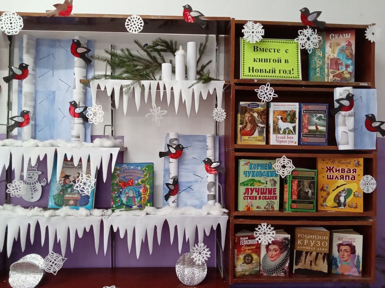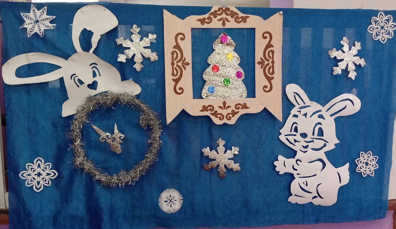 Специалисты библиотеки оформили праздничную фотозону "Зима раскрыла снежные объятия".