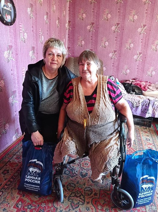 Пенсионерке-инвалиду оказали необходимую гуманитарную помощьСегодня, 7 мая, руководитель общественной приемной Пугачева М.Б. и исполнительный секретарь Ершовского местного отделения партии Кузнецова Л.Э. посетили пенсионерку Людмилу Михайловну Антонову. Людмила Михайловна - инвалид,обслуживается социальным работником,проживает в доме, из которого, по словам пенсионерки, она 6 лет не может самостоятельно выехать на инвалидном кресле во двор, также она нуждается в некоторых вещах. Пути решения этой проблемы в данный момент представителями партии ищутся. Людмиле Михайловне на сегодняшний день оказана гуманитарная помощь (продукты, бытовая химия, постельные принадлежности).