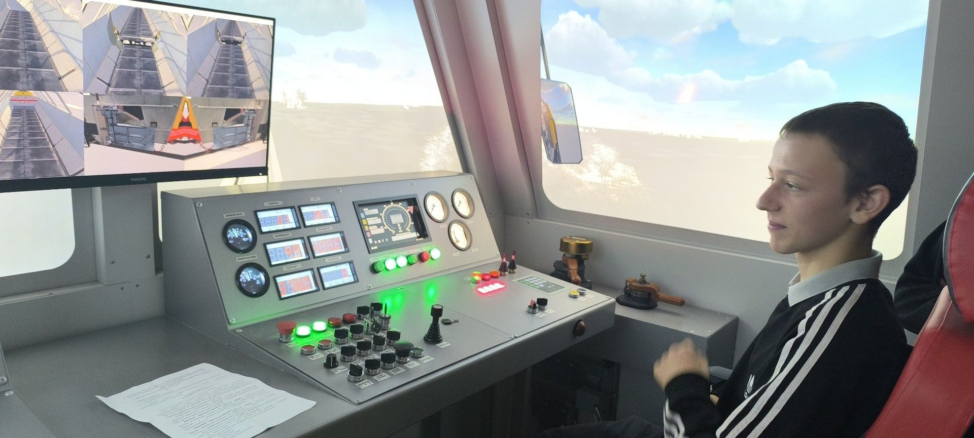 Ученикам показали тренажерные комплексы, на которых тренируются и обучаются машинисты-автомотрисы, машинисты снегоочистительной машины. Также они попробовали себя в роли дежурного по переезду с помощью VR-тренажера.
