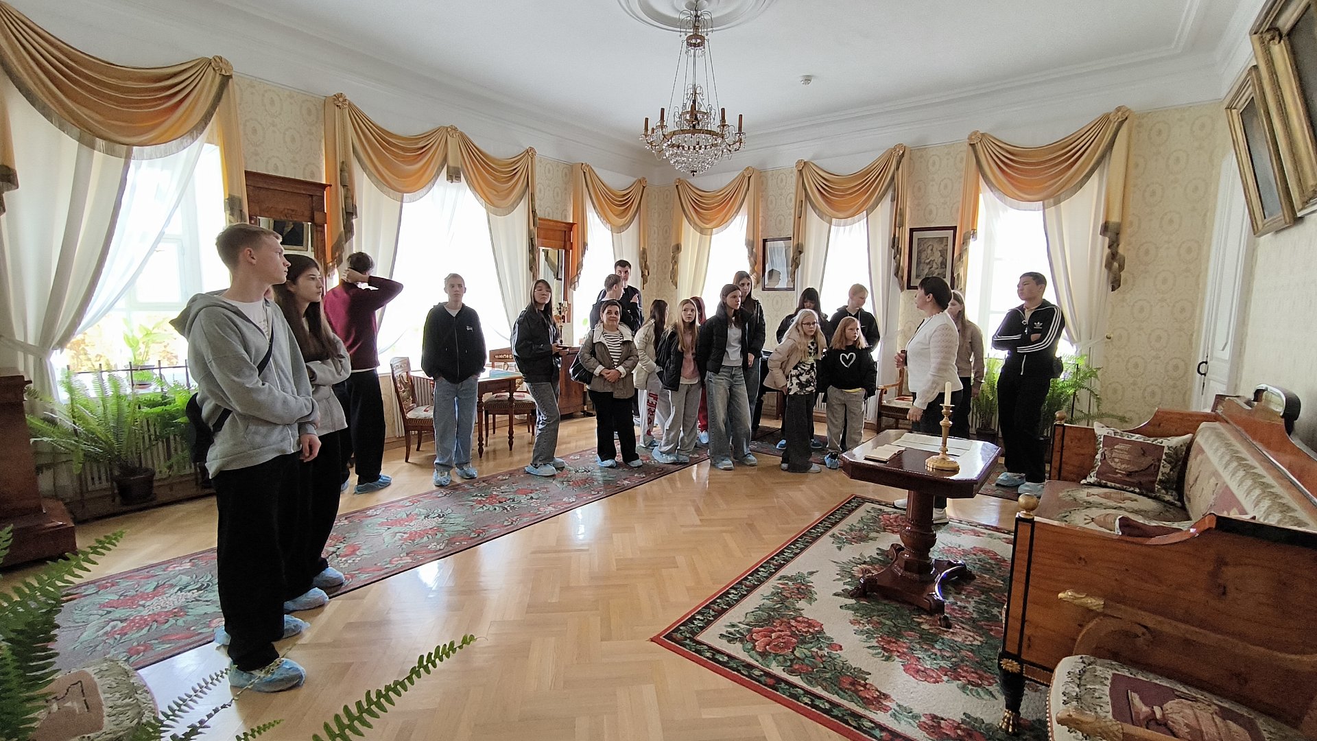 Экскурсия началась с посещения барского дома, который был построен по приказу бабушки Михаила Юрьевича, Елизаветы Алексеевны Арсеньевой, после смерти ее дочери и мужа. Ребята смогли увидеть комнаты (покои), в которых прошли детские и юношеские годы поэта. Увидели первые рукописи, рисунки, предметы быта времен М.Ю. Лермонтова.