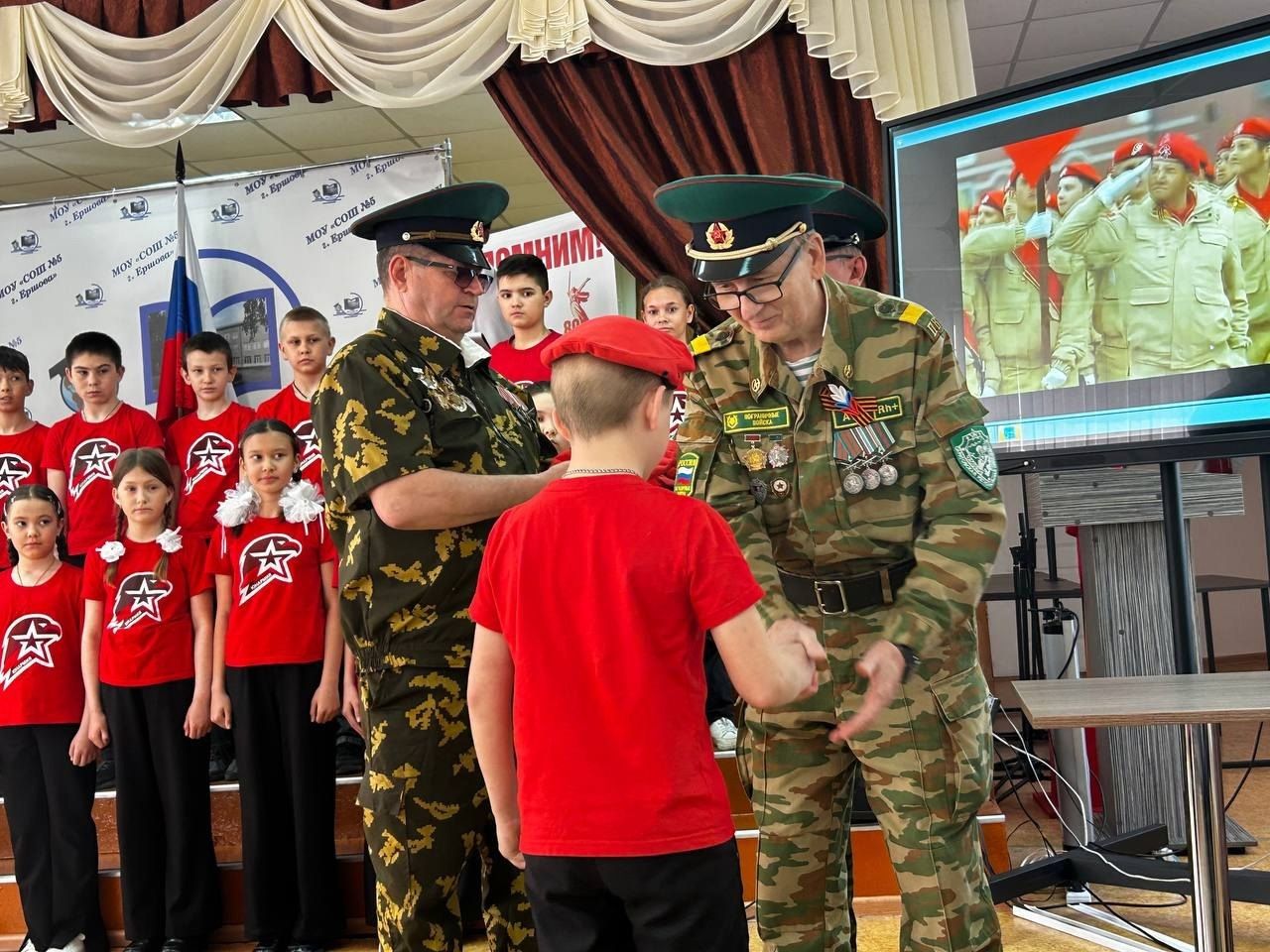 Гости поздравили ребят со вступлением в ряды Всероссийского военно-патриотического движения и пожелали им успехов в учебе и общественной деятельности.