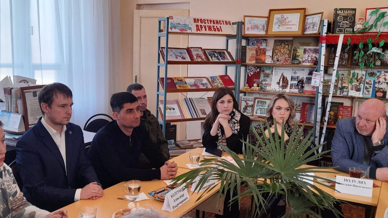 Следующее мероприятие, которое посетила делегация, – встреча с лидерами общественных организаций. На площадке центральной районной библиотеки прошло обсуждение вопросов взаимодействия общественных организаций, жителей района и власти при решении вопросов, важных для жителей всего района. На встрече также присутствовали члены общественной организации "Совет отцов" Юра Кочинян и Александр Колтунов, представители женсовета Ершовского отделения "Союза женщин России" Юлия Зотова, "Молодой гвардии" - Надежда Майер, Движения Первых - Марина Марина, "Боевого братства" - Михаил Нартов, Общественного совета - Нина Максимкина.