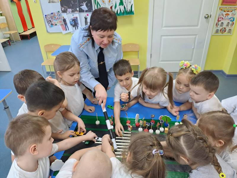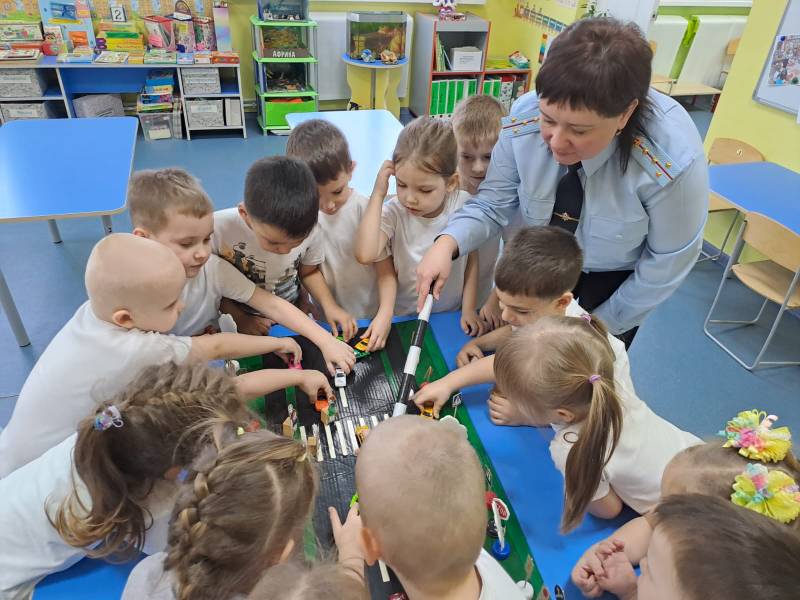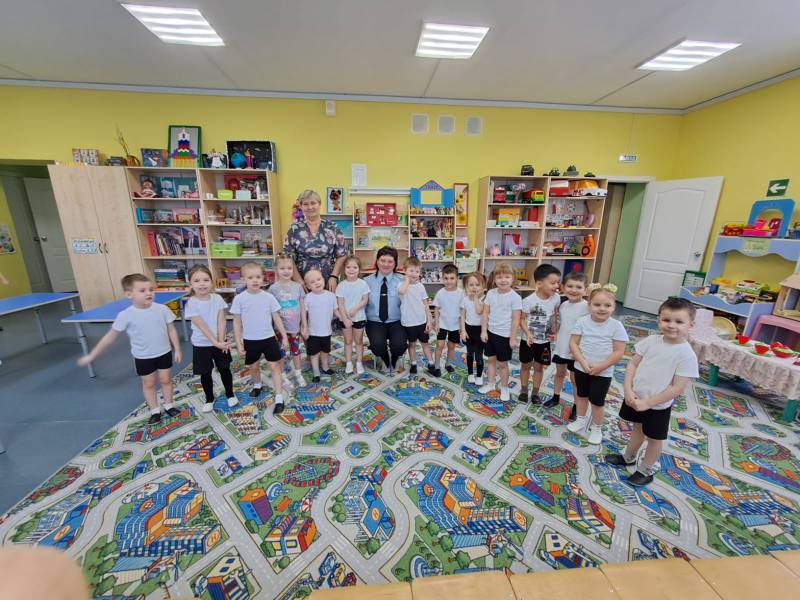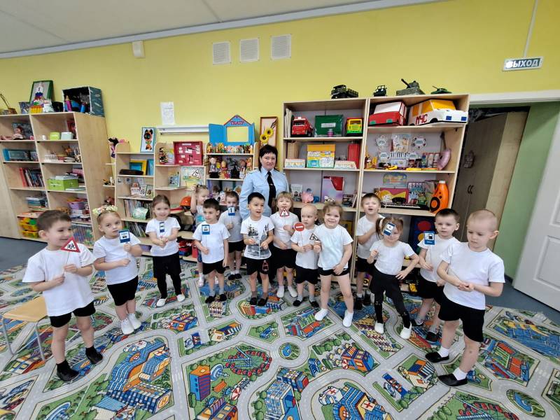 Она рассказала малышам, какую форму носят сотрудники полиции и в каких случаях можно обратиться к ним за помощью. Также сотрудница полиции в игровой форме познакомила детей с дорожными знаками и правилами поведения на дороге.