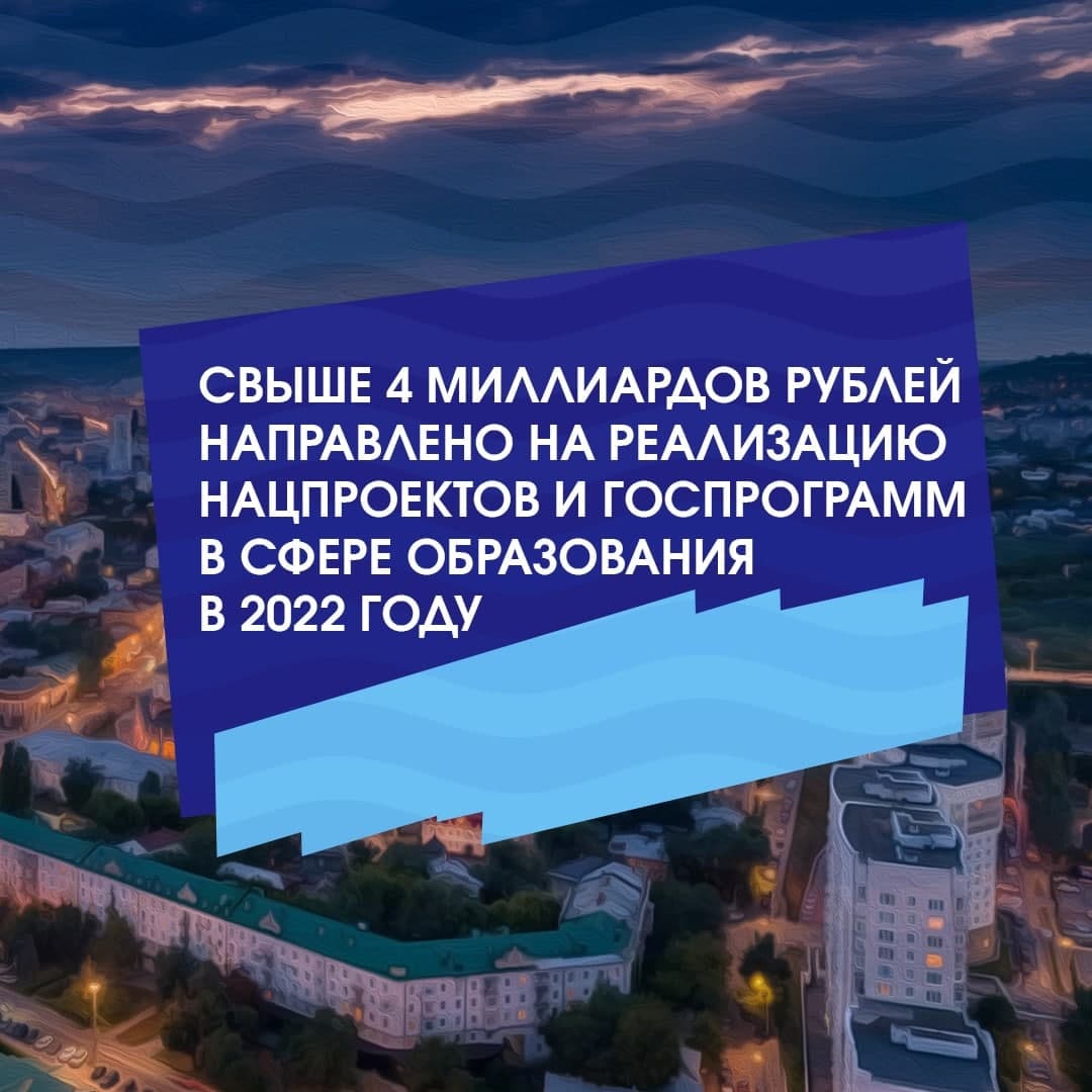 Свыше 4 млрд рублей направлено на реализацию нацпроектов Президента РФ и госпрограмм в сфере образования.
