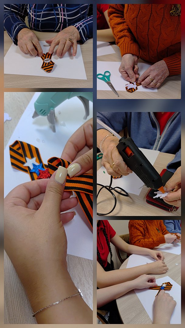 Творческо-патриотический мастер-класс по изготовлению брошей к великому дню - Дню Победы - объединил за круглым столом старших получателей услуг центра и педагогов с юнармейцами городской школы № 2.