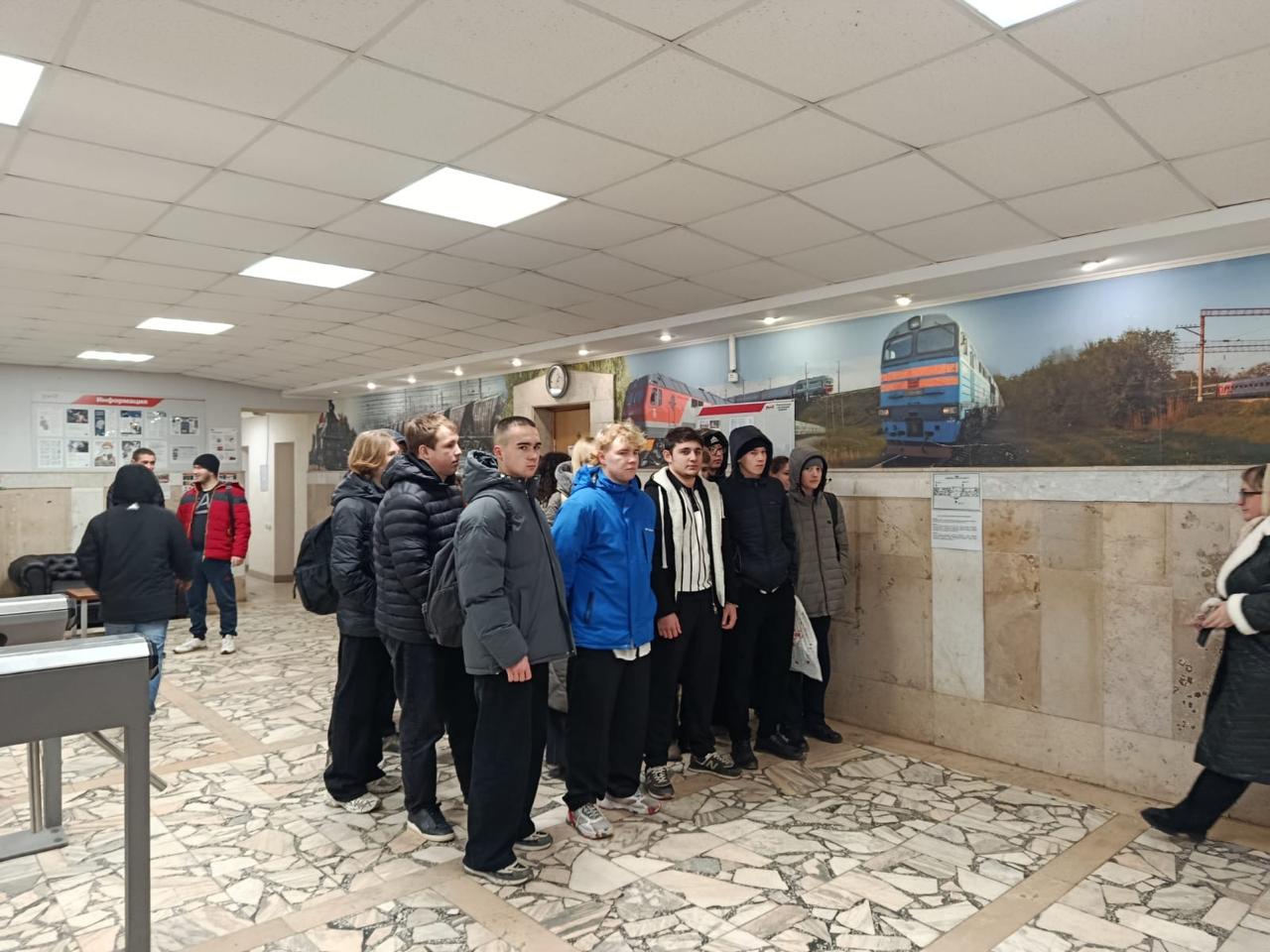 Первой точкой маршрута стал кабинет инструктажа, где школьники узнали, как локомотивные бригады проходят процедуру явки перед рейсом. Затем группа посетила кабинет предрейсового медицинского осмотра и смогла попробовать пройти небольшую часть процедуры самостоятельно, чтобы лучше понять важность контроля здоровья для железнодорожников.