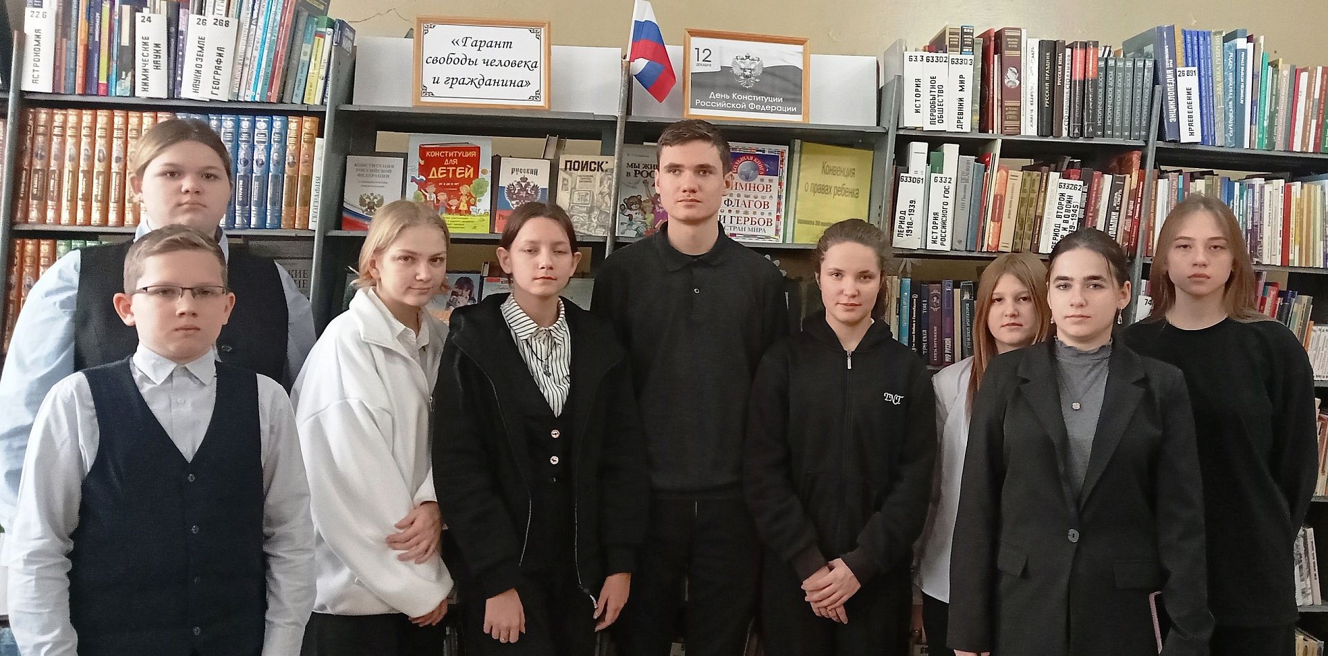 В детской библиотеке г.Ершова проведен информационно-правовой час «Конституция - основной гарант свободы человека и гражданина». Читатели библиотеки, учащиеся 6 «В» класса школы №2 (классный руководитель Эльмира Юсупова) и учащиеся 9 «А» и 9 «Б» классов школы №1 (классный руководитель Ольга Кибиткина), познакомились с историей принятия документа, основными правами и обязанностями граждан, гарантированных Конституцией Российской Федерации. Также ребята узнали значение таких понятий, как «гражданин», «правила», «законы», «права человека», ознакомились с кратким содержанием Конституции Российской Федерации.