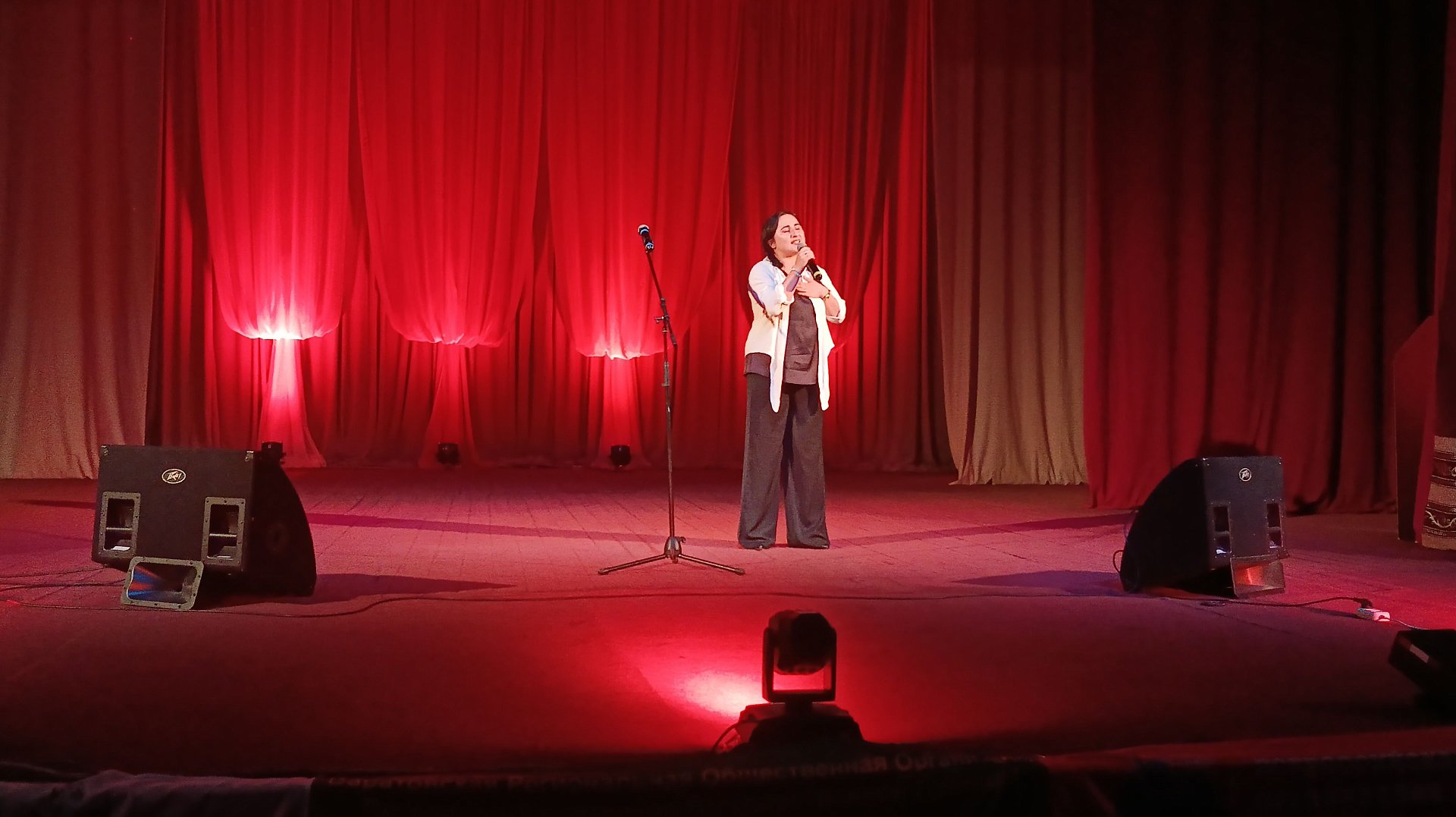 Открытие выставки сопровождалось небольшой концертной программой. От обычного концерта она отличалась тем, что пели и читали стихотворения не только профессиональные артисты районного Дома культуры, но и члены семей участников СВО.