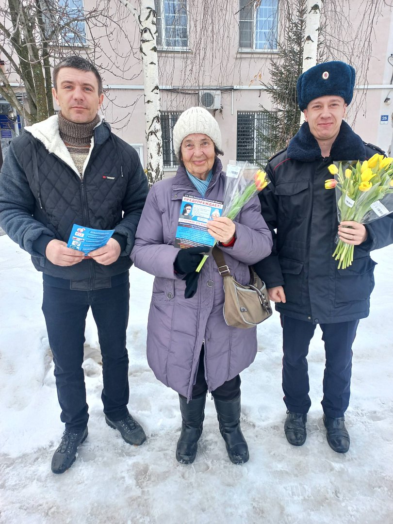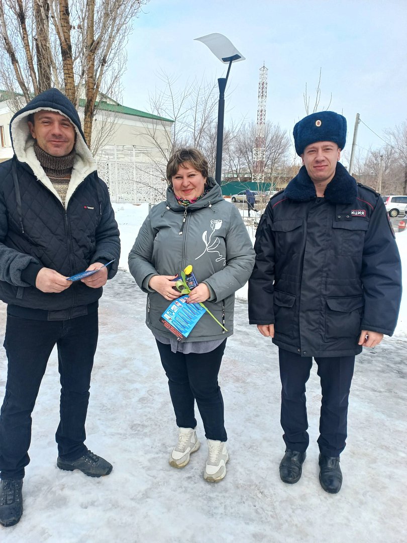 В Ершове полицейский и общественник поздравили горожанок с наступающим 8 Марта и предупредили о мошенниках