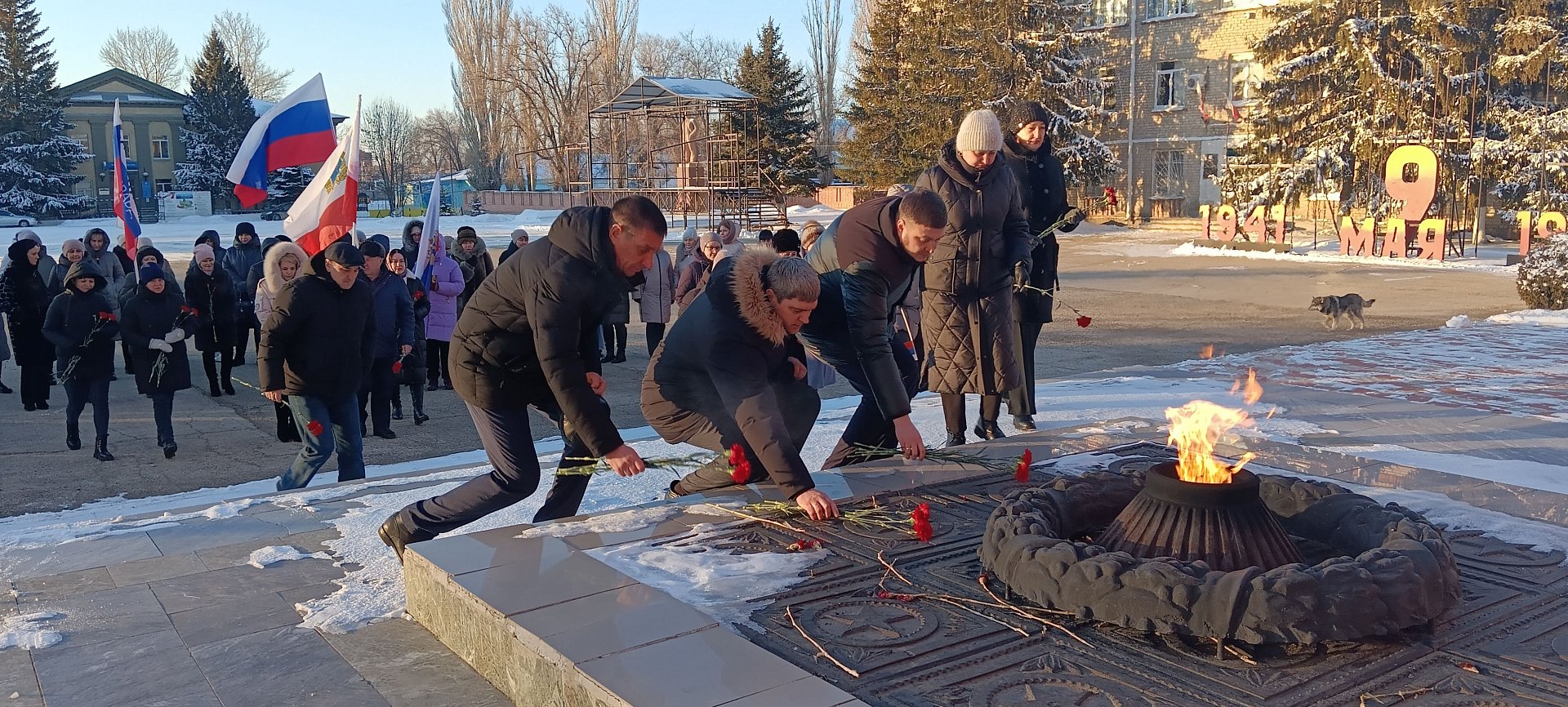 Память погибших земляков почтили минутой молчания и возложили цветы к мемориалу «Вам, ушедшим в бессмертие, вечная слава и память потомков».