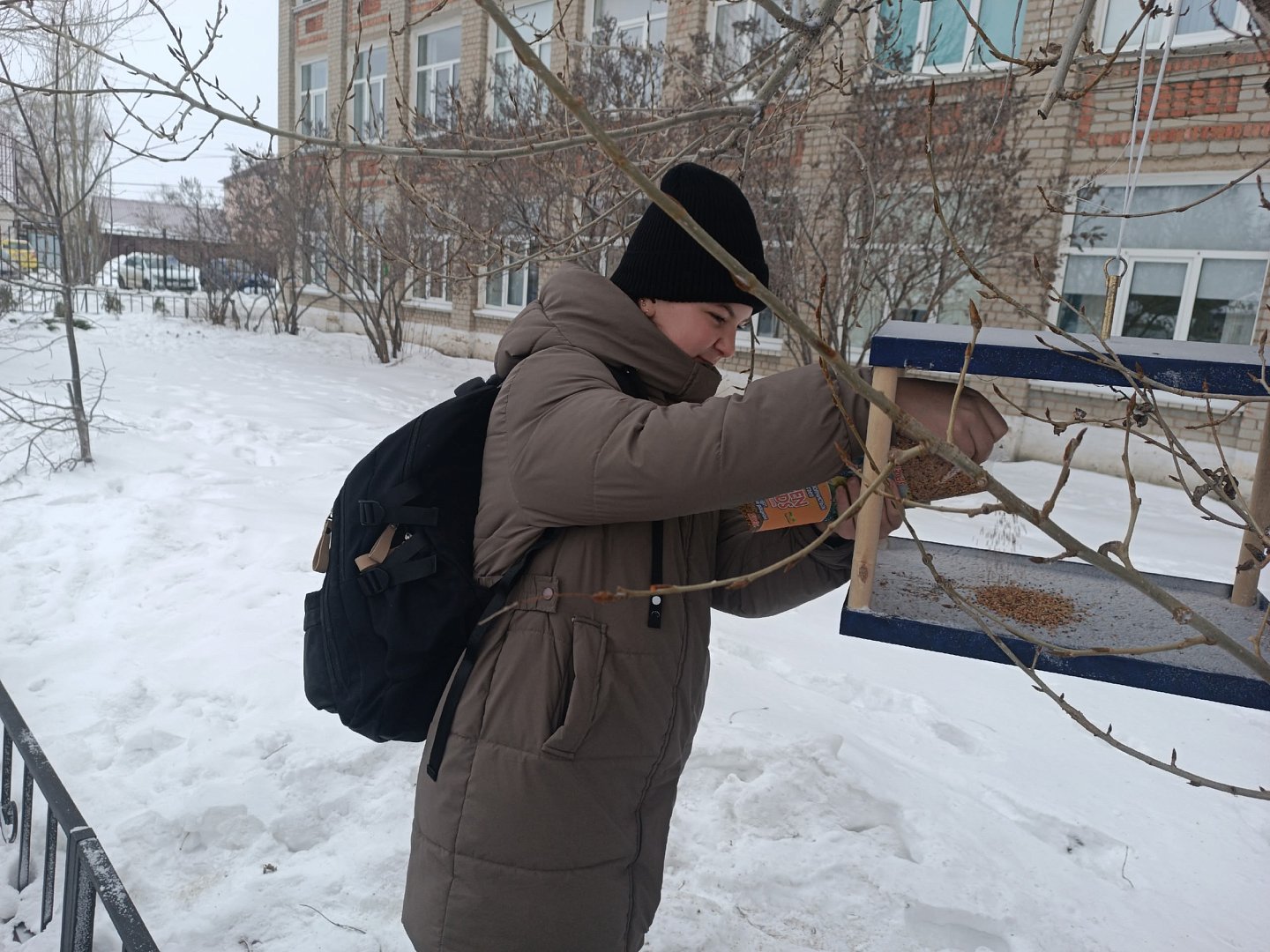 Ребята организовали регулярный подкорм, чтобы птицы могли рассчитывать на помощь каждый день. В кормушки кладут несолёные семечки подсолнечника, неочищенные зёрна проса, дроблёную кукурузу.