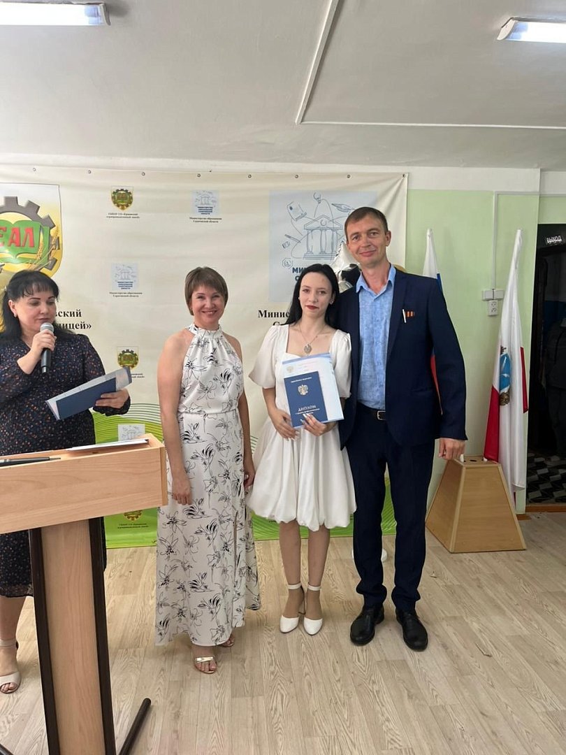 7 июля в Ершовском агропромышленном лицее прошла торжественная церемония выпуска студентов. Вручение дипломов – одно из самых волнующих событий в жизни недавнего студента. Дипломы как символ упорной работы и новых возможностей получили выпускники групп: «Тракторист-машинист сельскохозяйственного производства», «Сварщики (ручной и частично механизированной сварки (наплавки)», «Продавец, контролер-кассир», «Хозяйка (ин) усадьбы», «Мастер сельскохозяйственного производства», «Оператор швейного оборудования».